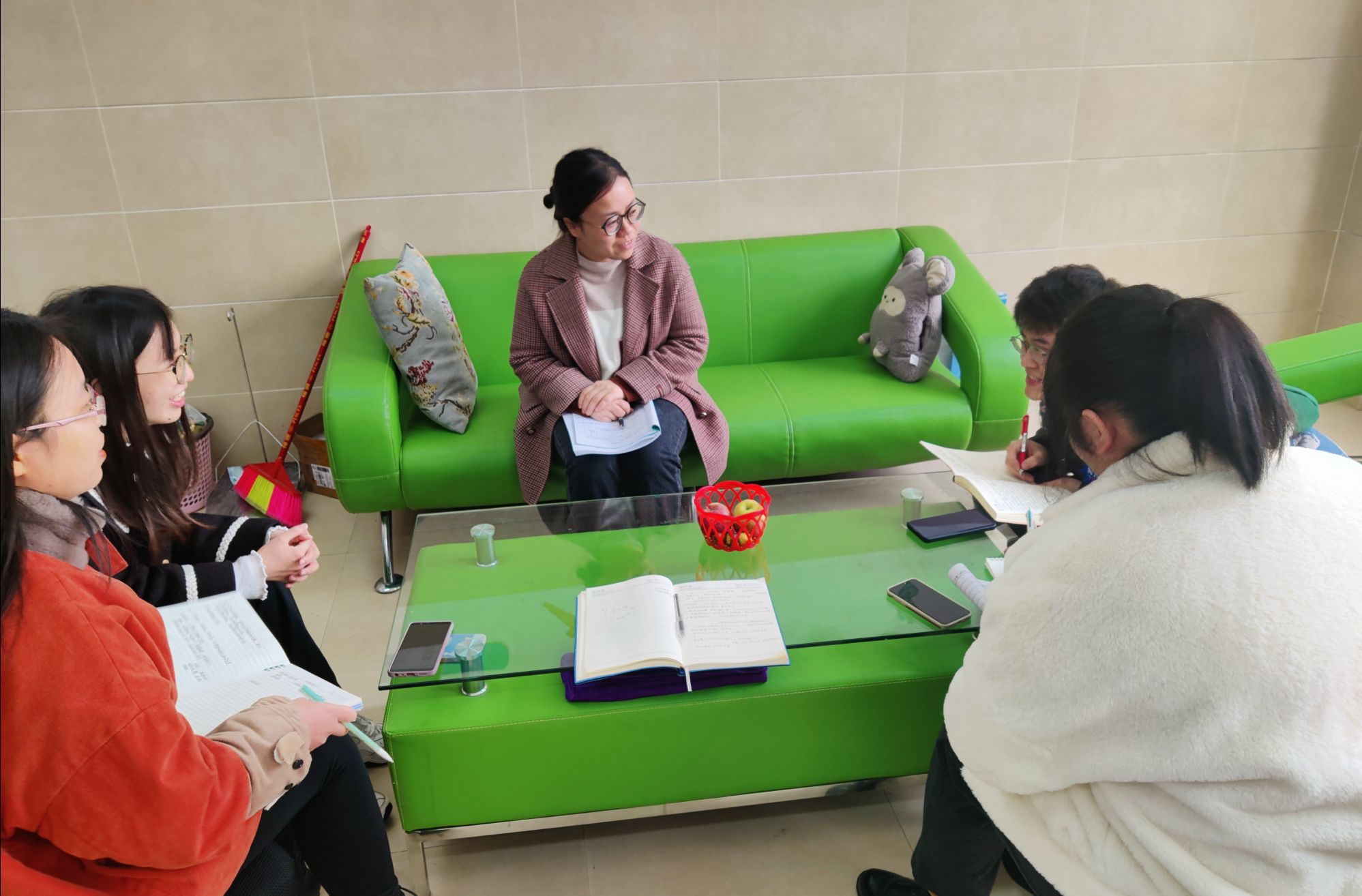 说评议课活动结束后,金欢欢老师与美的中学相关教师就本学期应用心理学专业员工的实习工作进行了深入交流。在交流中,该校领导和老师们都对应用心理学专业的实习生给予一致好评,认为实习生专业素质过硬,工作适应能力强,遵规守纪,对该校的公司产品工作起到了积极的辅助作用。金欢欢老师代表应用心理学系对该校教师的实习指导工作表示感谢,并耐心嘱咐实习生们再接再厉,认真完成好接下来的实习工作任务,戒骄戒躁,积累丰富经验,锻炼过硬本领,为成为合格的心理健康教育工作者做好准备。