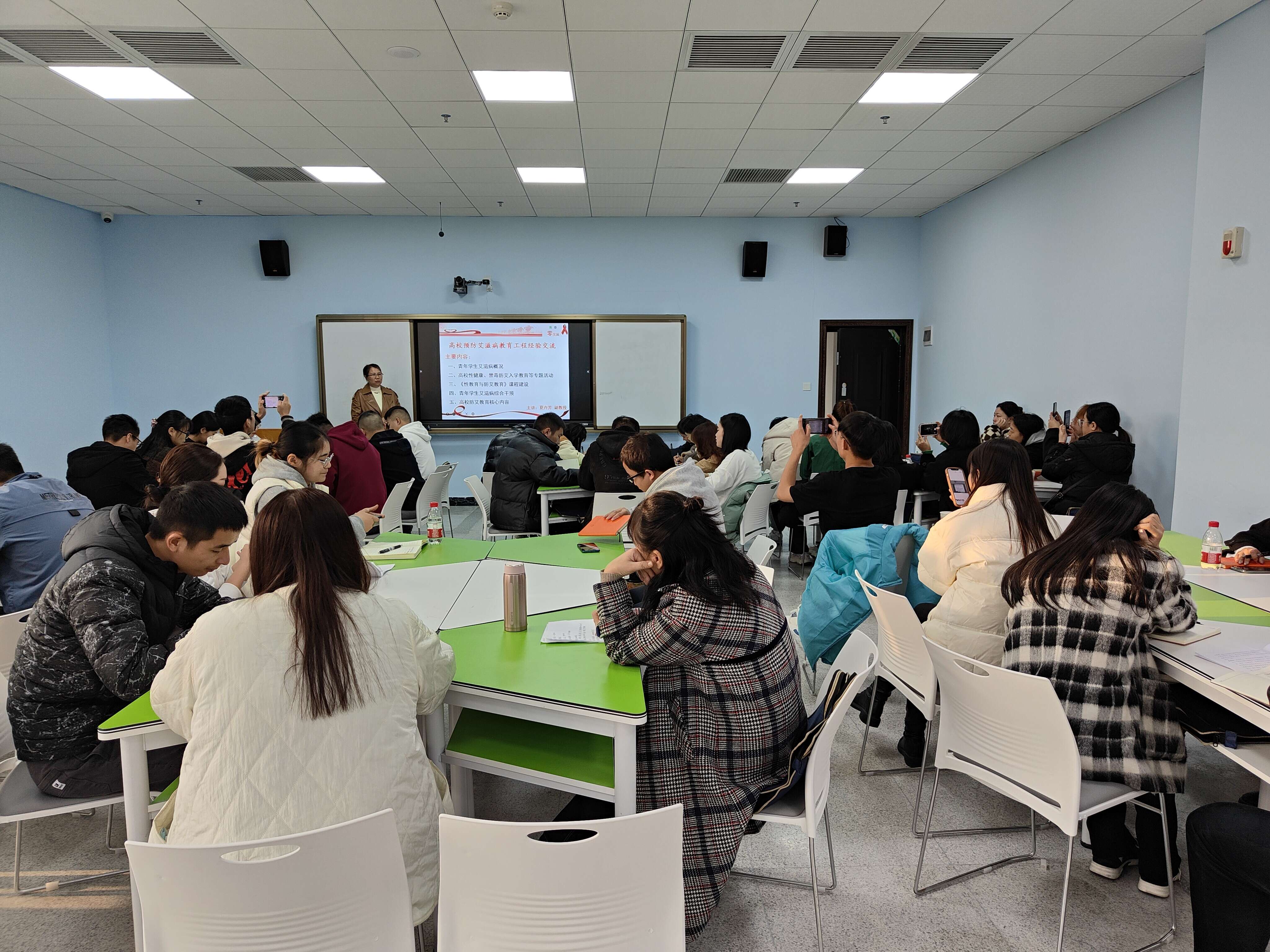 培训结束后学员纷纷咨询从自身学出发怎样开展预防艾滋病教育事宜,夏卉芳现场一一进行回答,本次讲座培训得到全体学员一致好评。