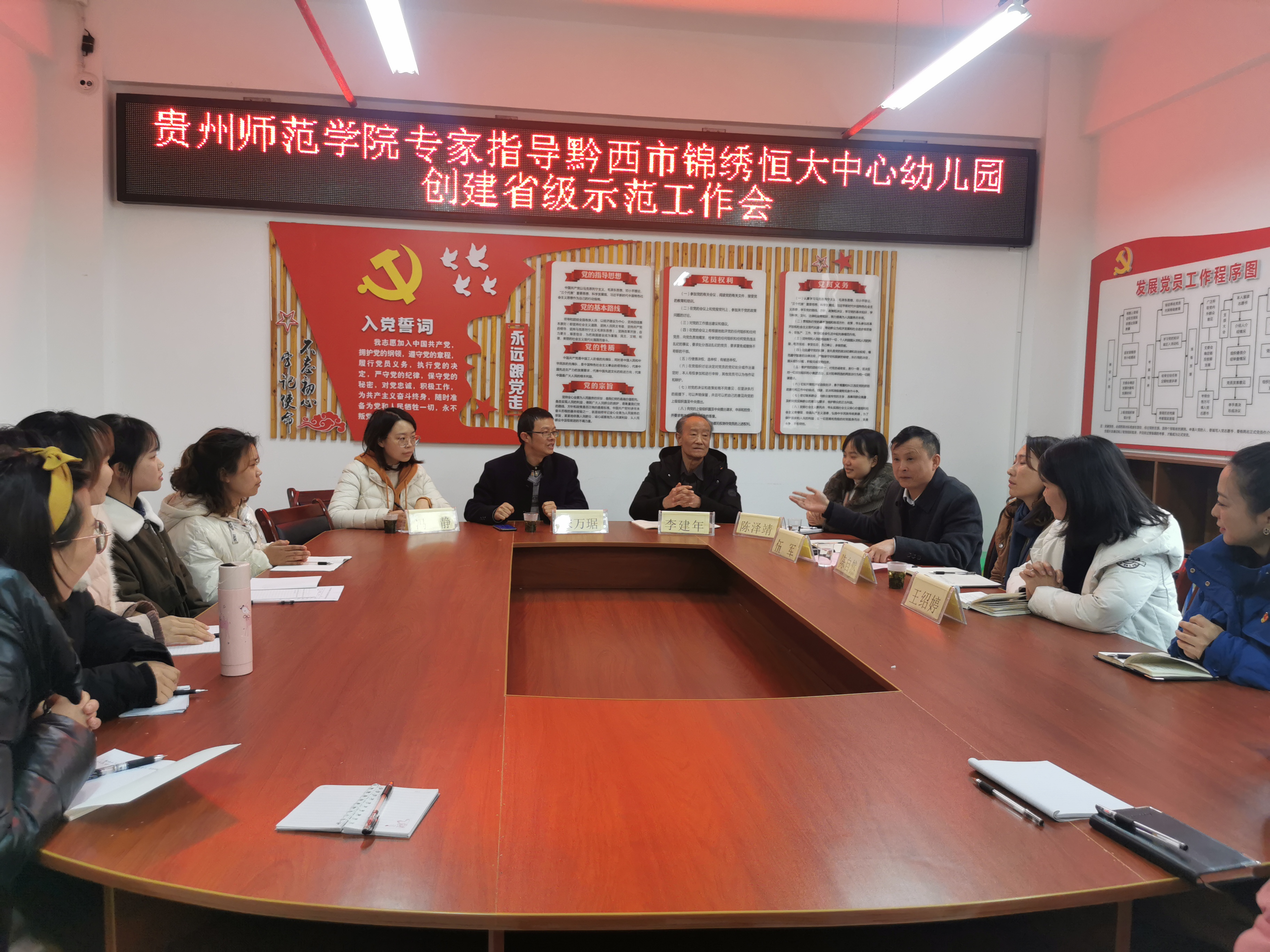 2022年1月5日下午,bevictor伟德官网宋万琚经理、李建年老师、陈泽婧老师、冯静老师等一行四人前往黔西市锦绣恒大中心幼儿园,参加该园组织的“创建省级示范工作指导会”。参与会议的人员还有黔西市教育科技局学前教育质量中心主任伍军、黔西市学前教育质量中心教研员陈自然、黔西市锦绣恒大中心幼儿园园长王绍婷以及该园的全体主班教师等。