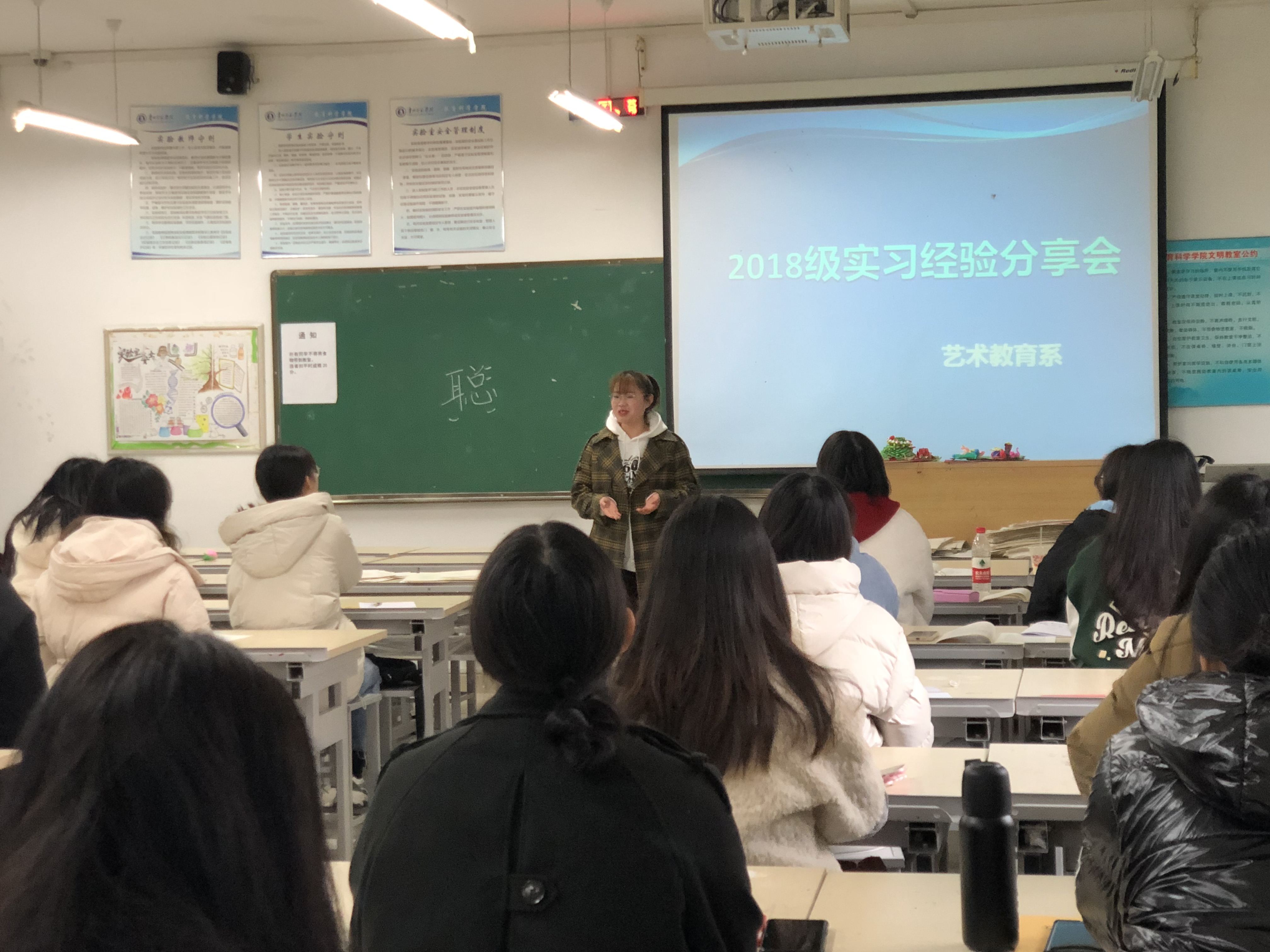 2022年3月2日,18级艺术教育专业的6位同学给19级艺术教育专业的员工分享他们的实习经验。实习是师范类专业必修满的学分,更是成为一个真正教师必不可缺的。此次经验分享主要从公司介绍、与导师员工建立关系、实习内容、备课上课、考研时间安排、实习心得等方面进行分享。在不同的公司有不同的情况,但在小学实习的工作可大致分成听课、备课、试讲和组织活动等。