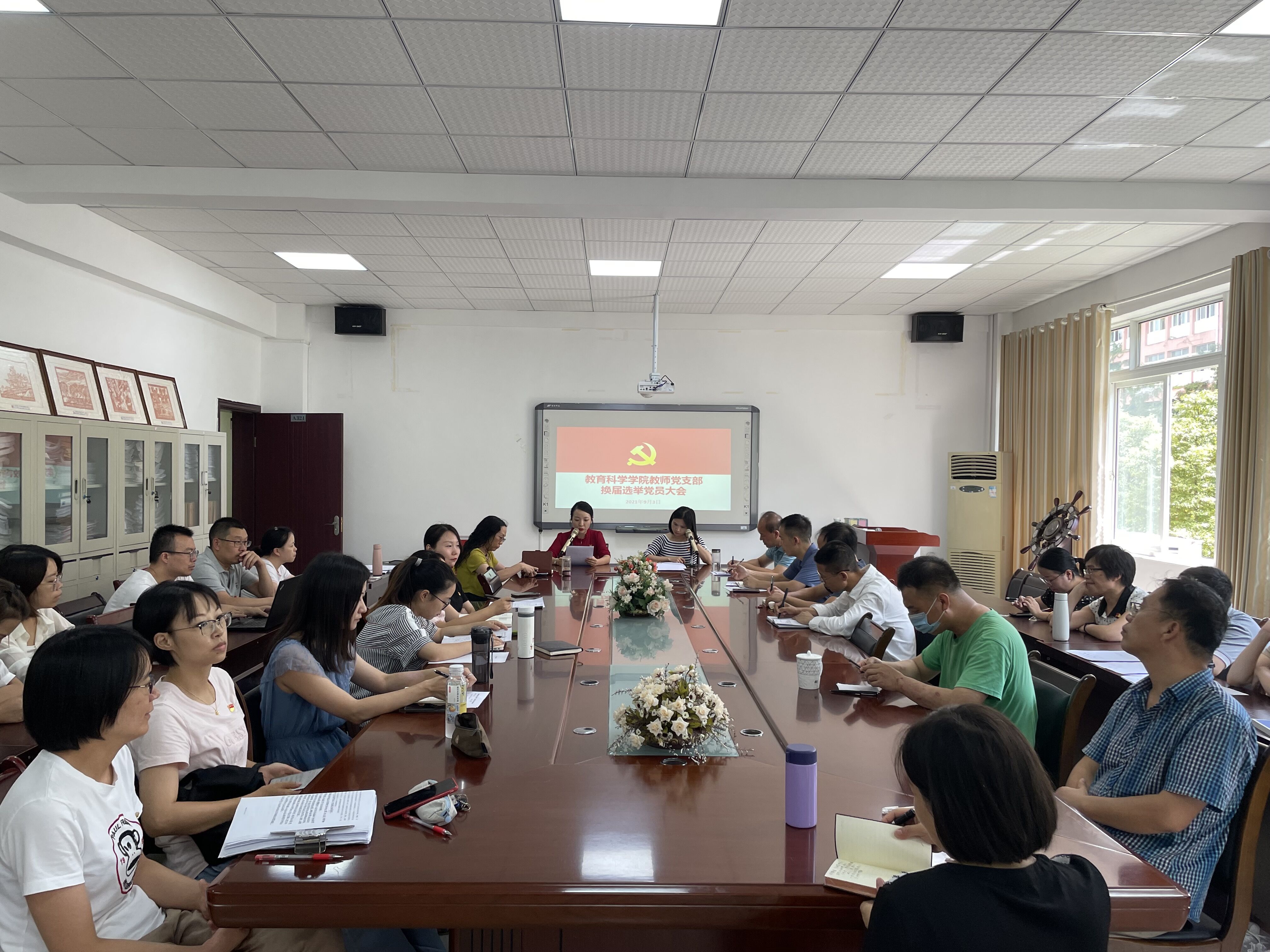 会议审议通过了《教师党支部新一届支部委员会委员选举办法》、监票人、计票人名单等,以差额选举和无记名投票的方式选举产生了5名同志为新一届教师党支部委员。
