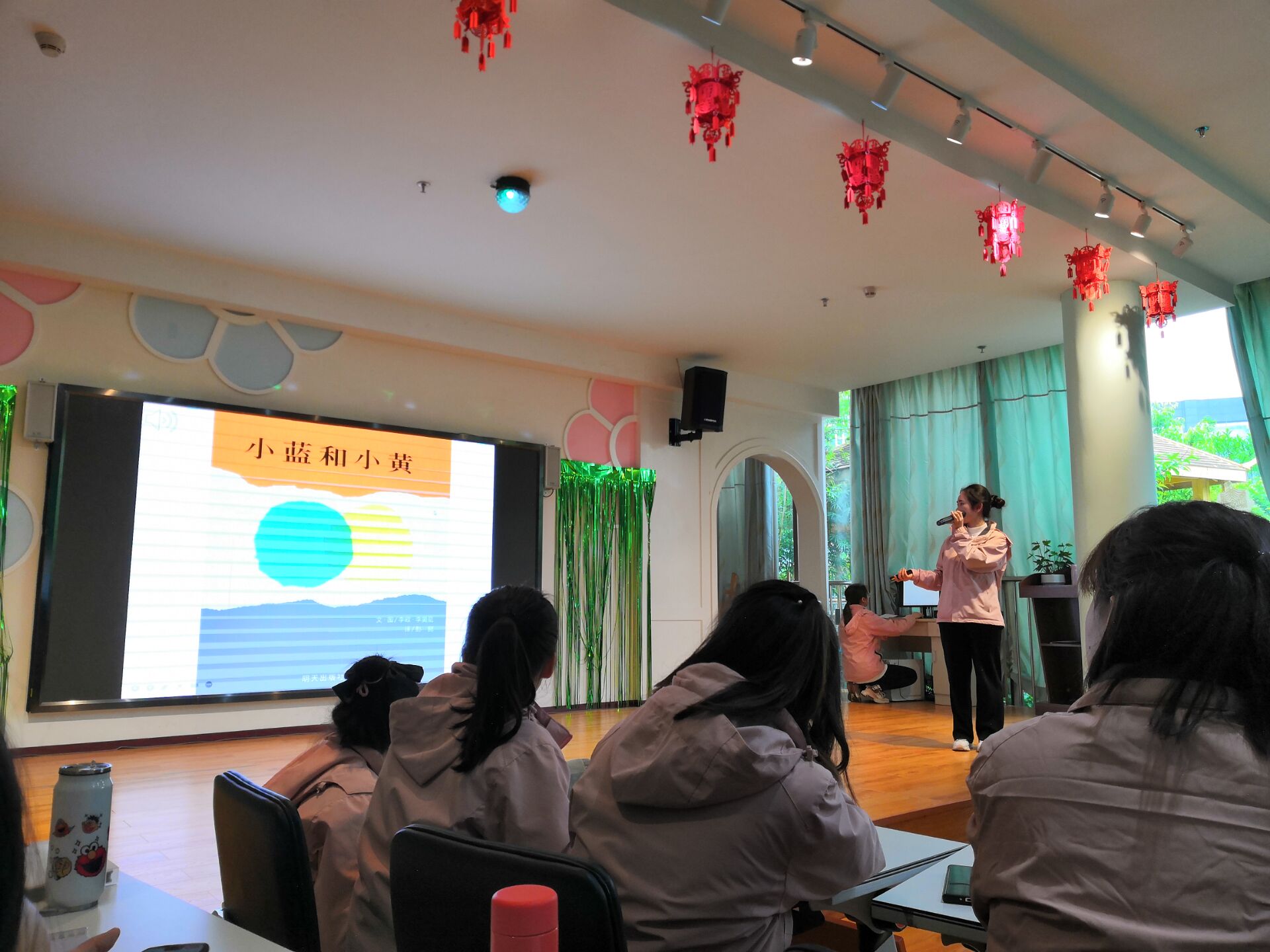 首先,伴随着优美动听的配乐,实验幼儿园教师精彩地讲读了绘本故事《小蓝和小黄》,开启了本次幸福阅读沙龙研讨活动。接下来,教师们踊跃分享了自己阅读的想法与见解。例如,有两位老师通过对话的方式分享了《小蓝和小黄》的故事由来,也有老师根据绘本内容抒写了“去找到”和“被发现”的诗歌,还有教师对这本绘本故事进行了创编。最后,教师们研讨了基于这本绘本不同年龄段和不同领域的教育价值。