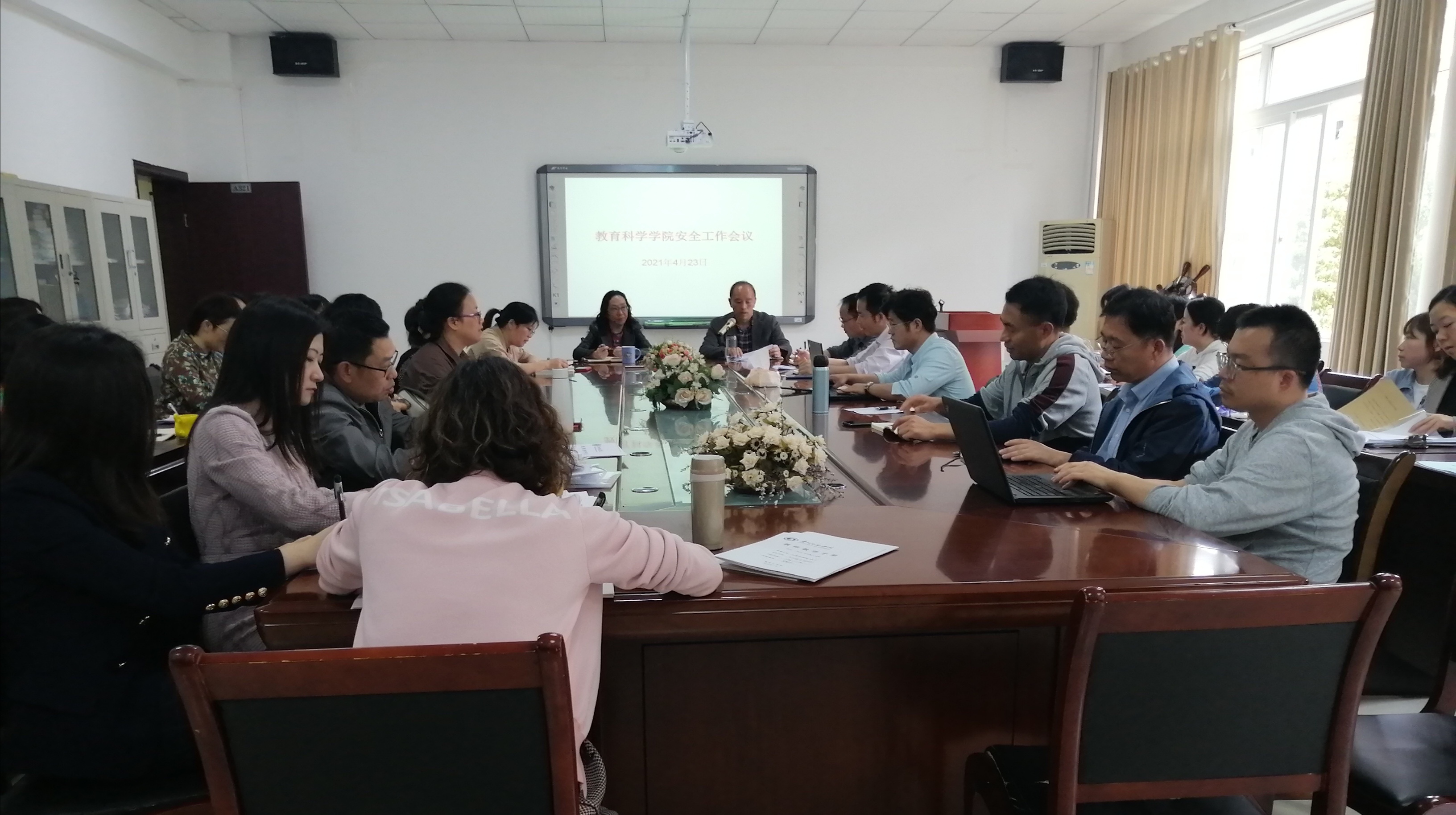 彭祥友首先通报近期公司安全稳定工作情况,就特殊教育系发生的安全隐患整改落实情况进行说明。之后,安排部署落实公司有关教学实习安全、员工管理安全、教师科研交流安全、公司网络安全、公司行政办公区域管理安全,以及公司意识形态管理等提出具体要求,落实公司安全责任制,党政同责、分管负责、人人有责。最后,要求全体教师要高度重视安全稳定工作,把员工的生命健康放在第一位,在五一节假日即将到来之际,认真开展隐患排查,开展安全教育,加强值班,担负责任,认真维护好校园安全稳定,做好公司人才培养各项工作。