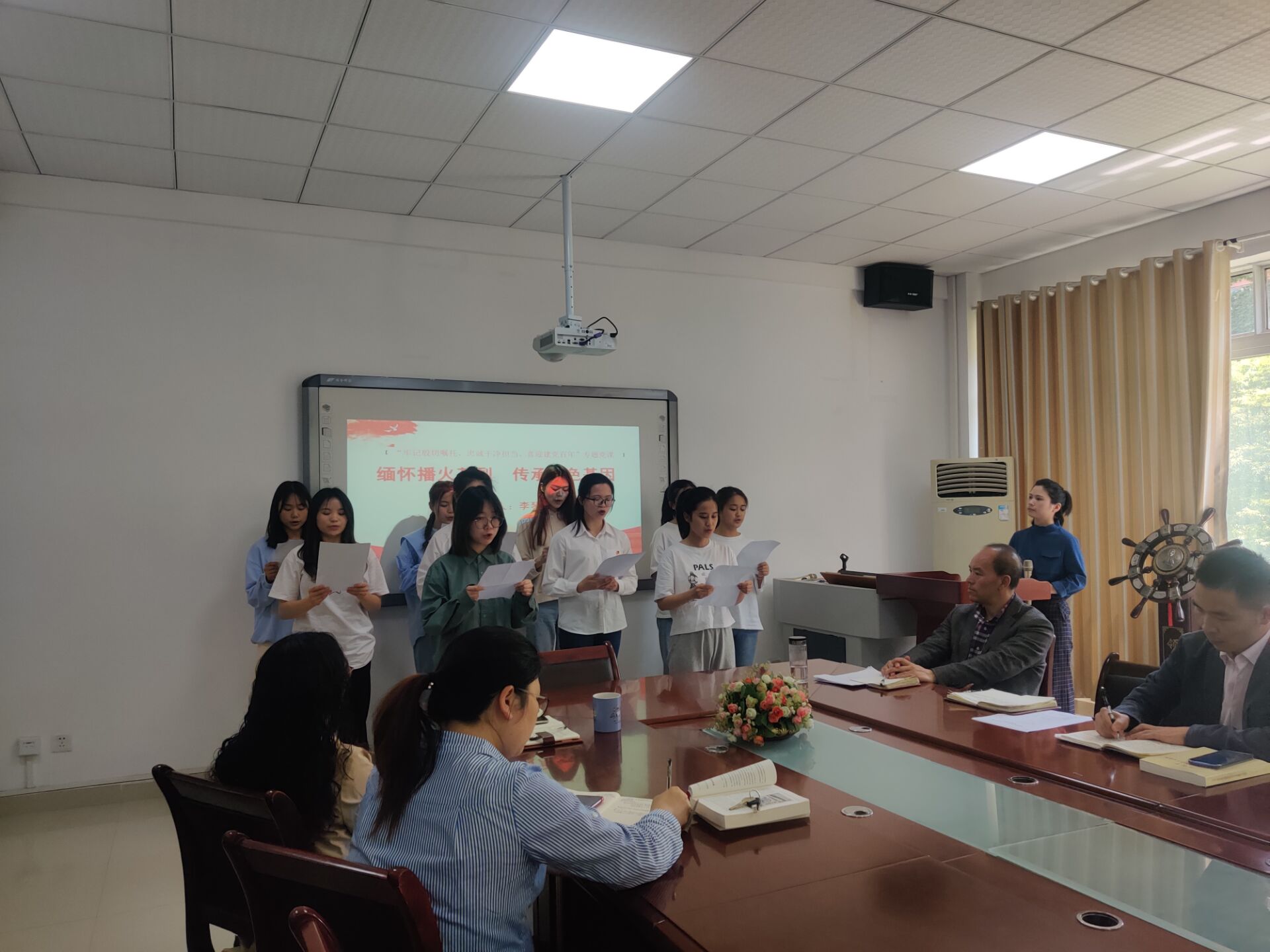 李琴上党课中的朗诵表演