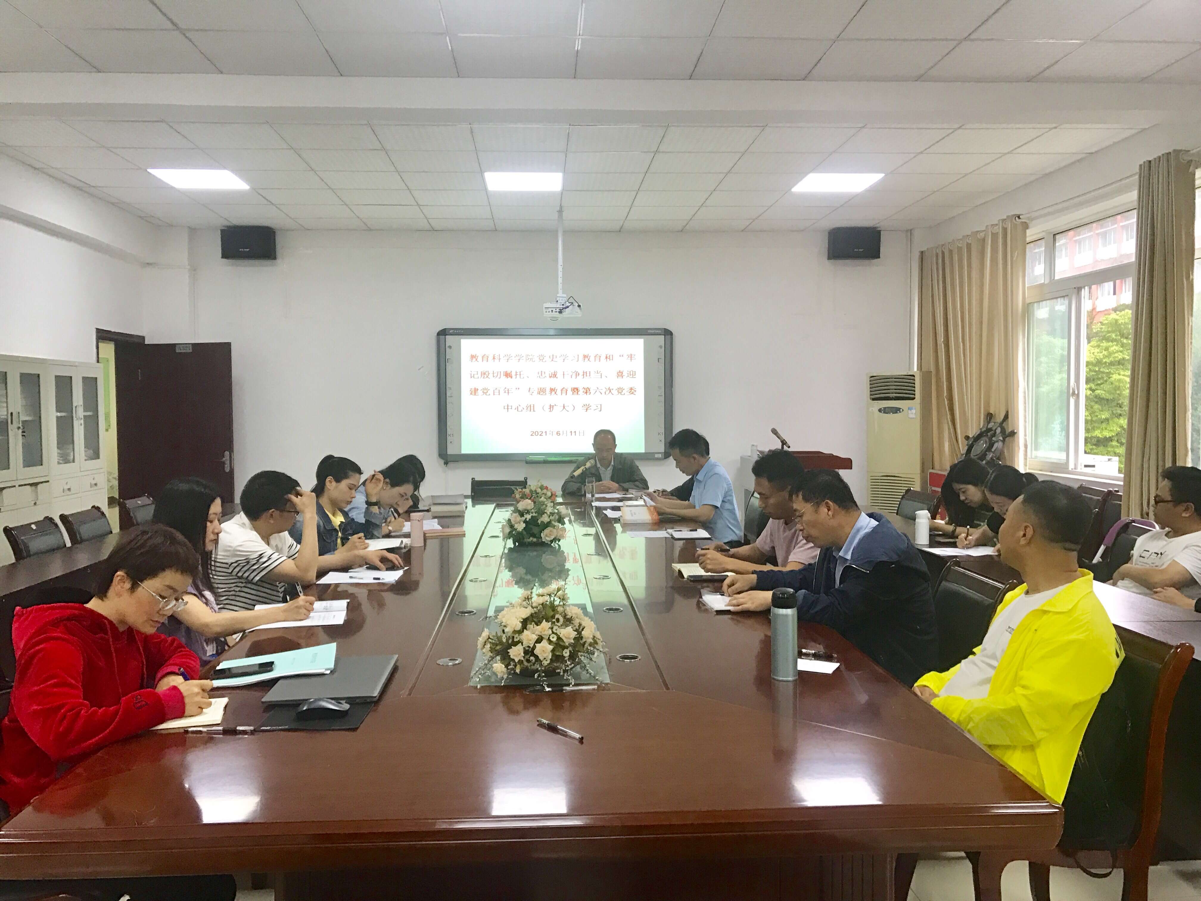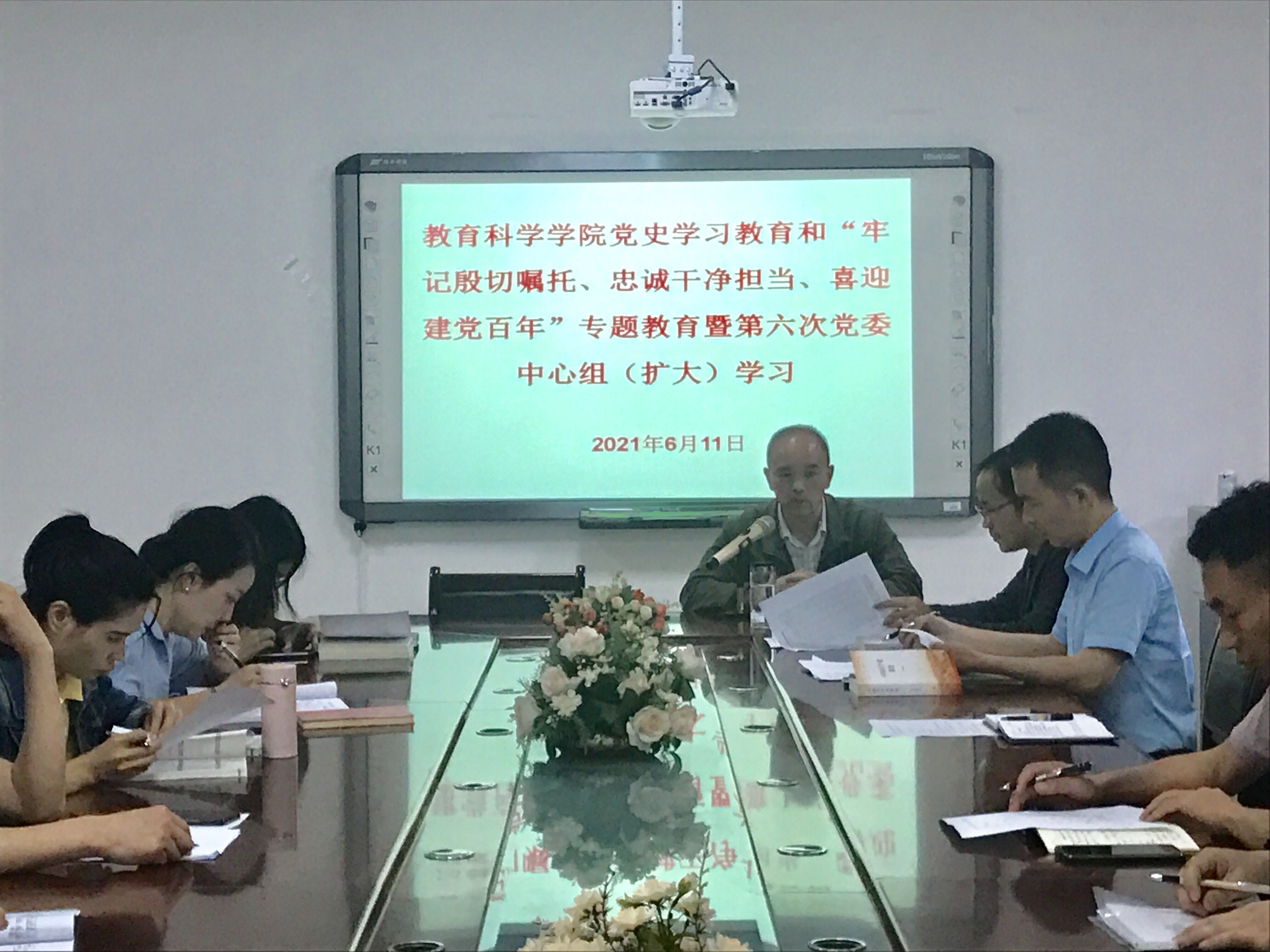 2021年6月11日中午1:00,bevictor伟德官网在逸夫楼会议室举行党史学习教育和“牢记殷切嘱托、忠诚干净担当、喜迎建党百年”专题教育暨第六次党委中心组(扩大)学习,公司党委书记彭祥友主持,公司党委中心组成员参加,全体教师党员列席学习。