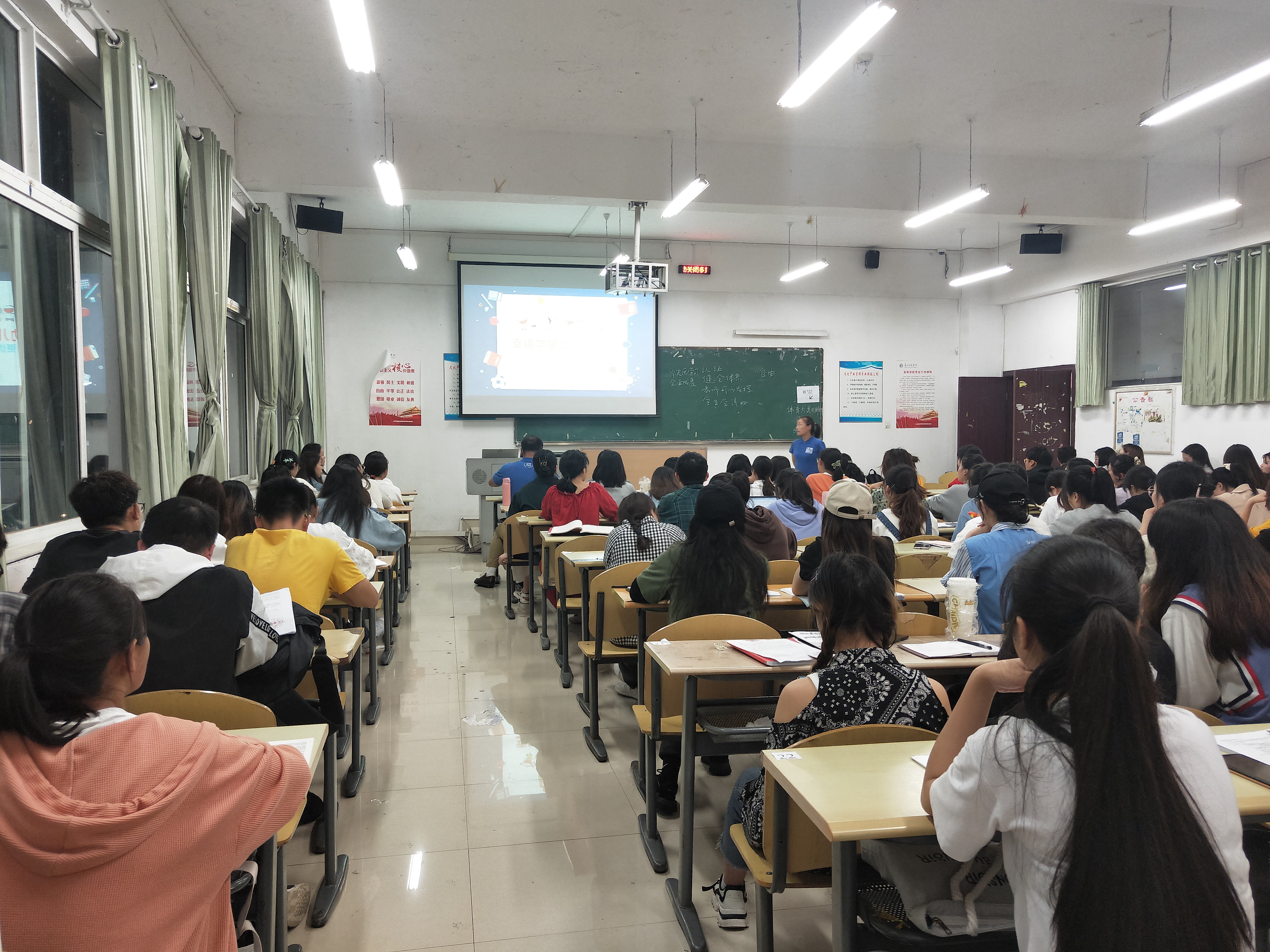 2021年6月1号晚上19:00,bevictor伟德官网邀请幸福学堂的颜董事长在逸夫楼204教室开设讲座,2018级学前教育系全体员工参加了讲座。