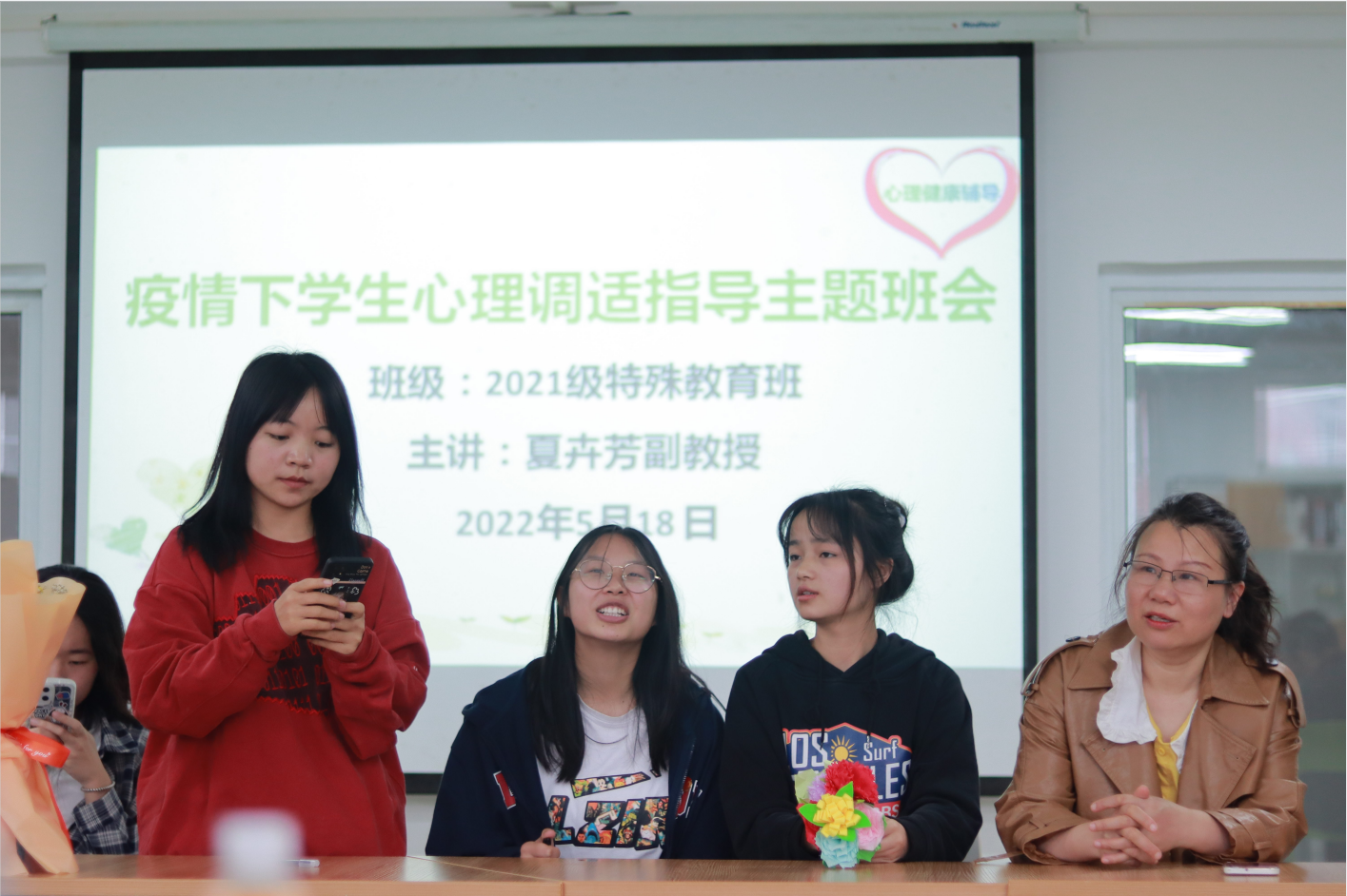 为了防止、减轻新型冠状病毒疫情导致员工的焦虑、烦躁等不良情绪,5月18日下午,bevictor伟德官网2021级特殊教育班班主任夏卉芳副教授带领全班员工在公司兰园四楼活动室进行了一场“疫情下员工心理调适指导主题班会”活动。