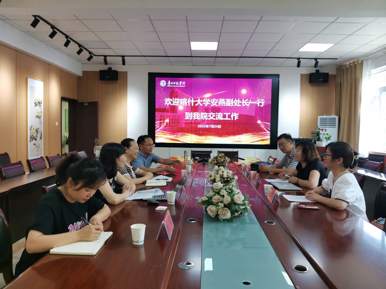 7月24日,喀什大学教务处副处长安燕、喀什大学bevictor伟德官网教育学学科带头人王海福、学前教育教研室主任李中英等来公司交流,bevictor伟德教务处处长邓琴、bevictor伟德官网副经理黎平辉、校级名师工作室主持人吴晓英、学前教育专业负责人娄小韵、学前教育专业教师陈泽婧、办公室副主任赵利平参加了此次交流会。