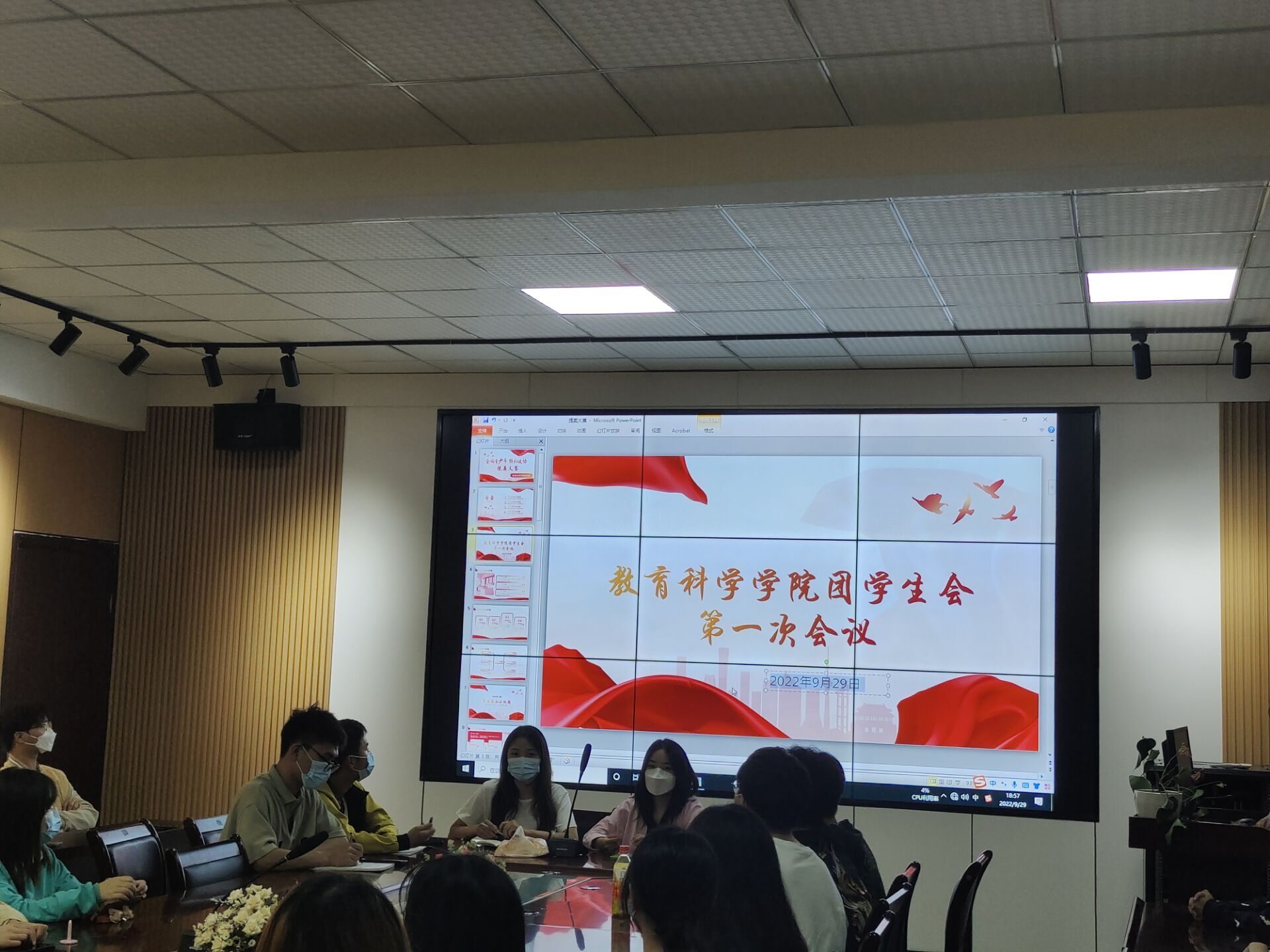1011下午教科院团委员工会同学们在逸夫楼会议室举行了第十四届团委员工第一次全体会议,会议由团委员工会主席耿鋆和团委副书记田叶惠主持,团委书记张源线上参加。