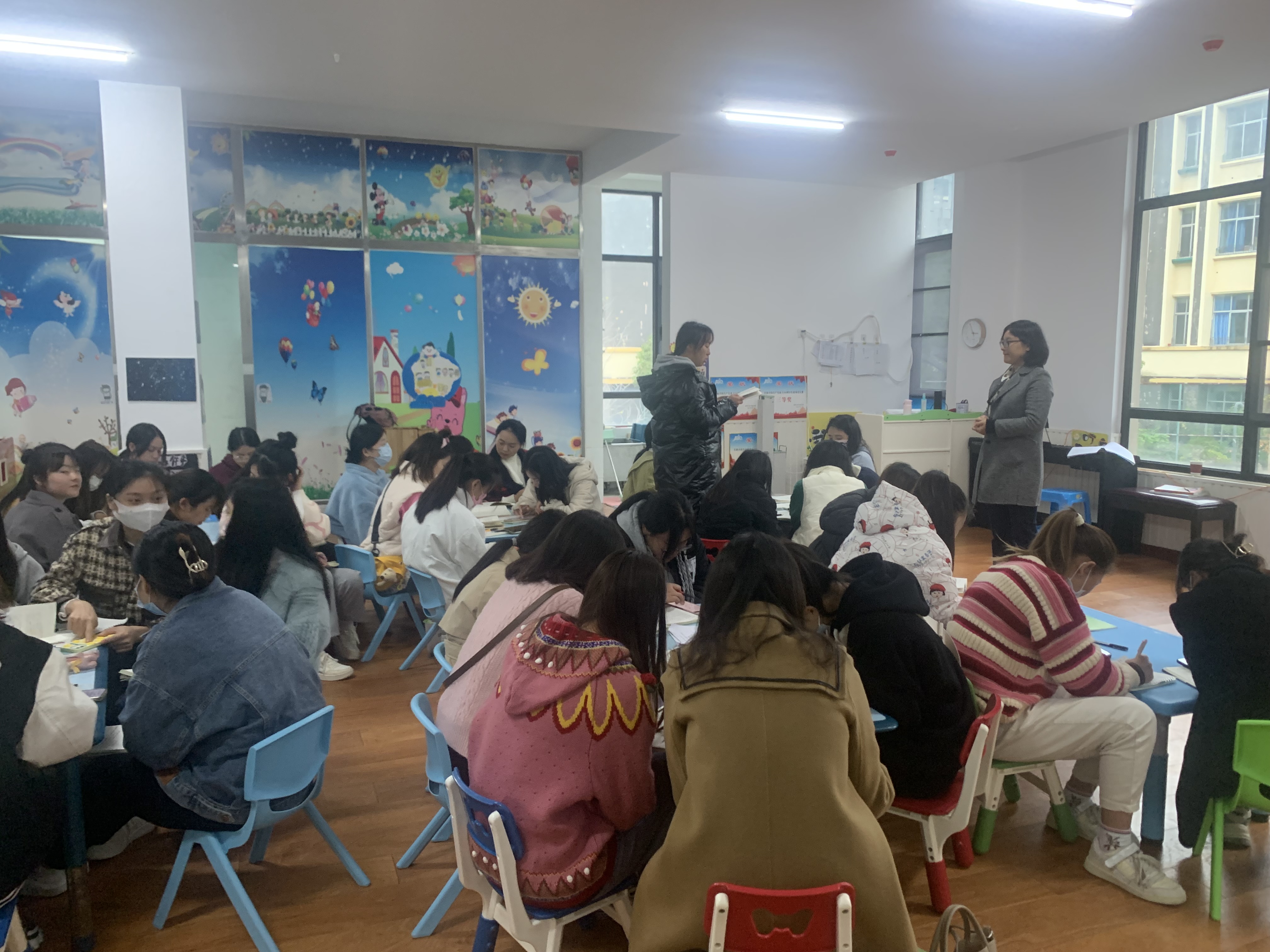 首先,王小为、陈泽婧老师就未来方舟E1E2幼儿园活动开展现状与园长陈多栖进行了交流,了解两所幼儿园当前团队培训、课程建设、游戏开展等方面的情况。其次,王小为老师和陈泽婧老师分别对E1E2两所幼儿园的全体教师开展了《幼儿游戏与学习》、《走进“游戏故事”》的专题讲座。随后,教师们针对所讲内容结合日常工作和学习中遇到的困惑、问题进行了提问,两位老师结合自身理解与经验进行了答疑。