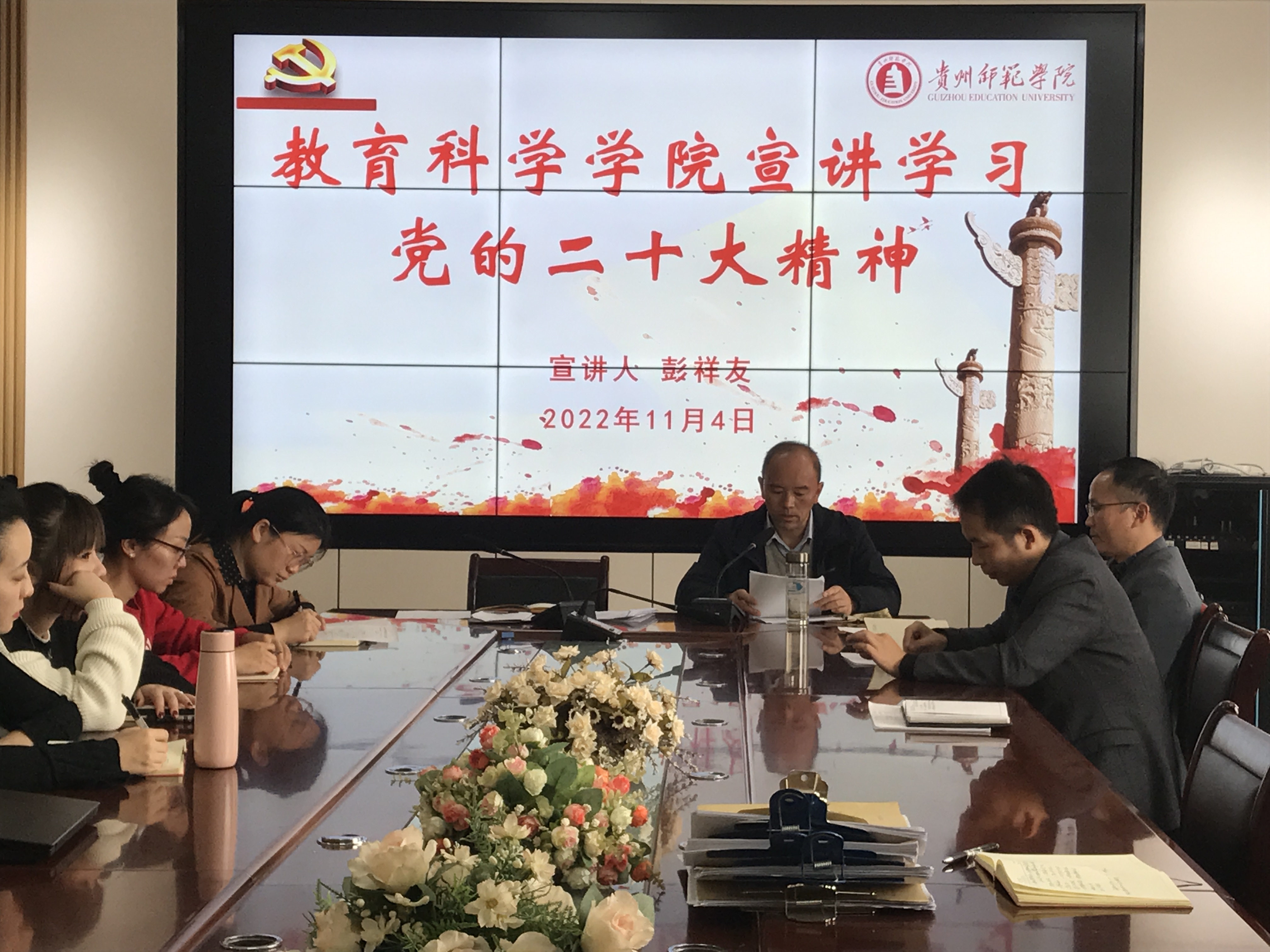 2022年11月4日下午,bevictor伟德官网在逸夫楼A321会议室组织宣讲学习党的二十大精神,公司党委书记彭祥友宣讲,全院教职工参加学习。