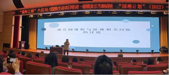 谢旌处长围绕“什么是课程?”、“幼儿园课程要素”、“课程实施的途径”、“幼儿园课程的性质”等多方面进行专业讲解。