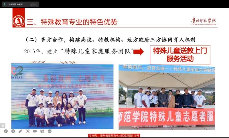 娄小韵对学前教育的课程设置特点,通识教育课程和专业教育课程进行介绍,导师制、个性化、多元化等培养特色进行讲解,并祝福同学们在师院乘风破浪、展翅高飞;朱紫桥对特殊教育专业的发展情况和员工培养情况进行介绍,就培养方案中涉及的指导思想、培养目标、毕业要求、课程结构及学分修读要求等问题对特殊教育专业的培养计划进行解读,同时期待2022级新同学顺利完成学业,攀高行远;马慧慧为同学们介绍了艺术教育专业的发展前景、培养模式、建设情况以及课程结构设置,他特别对艺术教育人才培养特色进行详细讲解,期待同学们拥有强烈的好奇心和丰富的想象力,激励大家尽早明确目标,努力成为卓越人才;倪磊就应用心理学专业的修读指南进行讲解以及专业的就业内容、方向进行介绍。课程主要分为通识教育模块、专业教育模块,倪磊对专业教育模块的课程进行详细的介绍,希望新生们认真学习各类课程同时重视实习方面的内容为未来就业夯实基础。