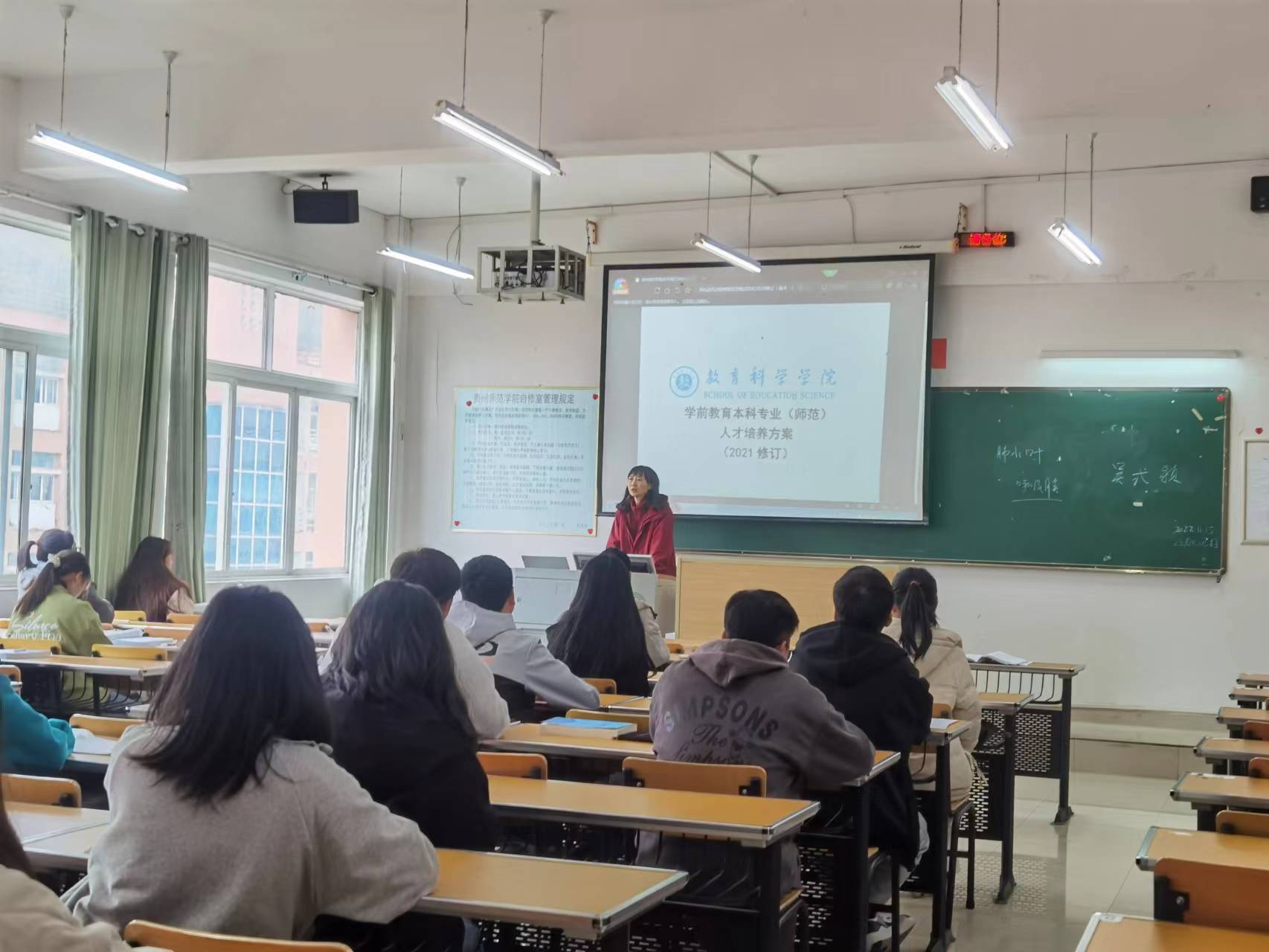 为推动2022级本科生合理规划大学时间、增强专业认同感,公司在11月29日学前教育专业、特殊教育专业、艺术教育专业、应用心理学专业在逸夫楼教室召开了本科生培养方案解读会,主讲人分别是学前教育系主任娄小韵、特殊教育系主任朱紫桥、艺术教育系主任马慧慧、应用心理学系主任倪磊。