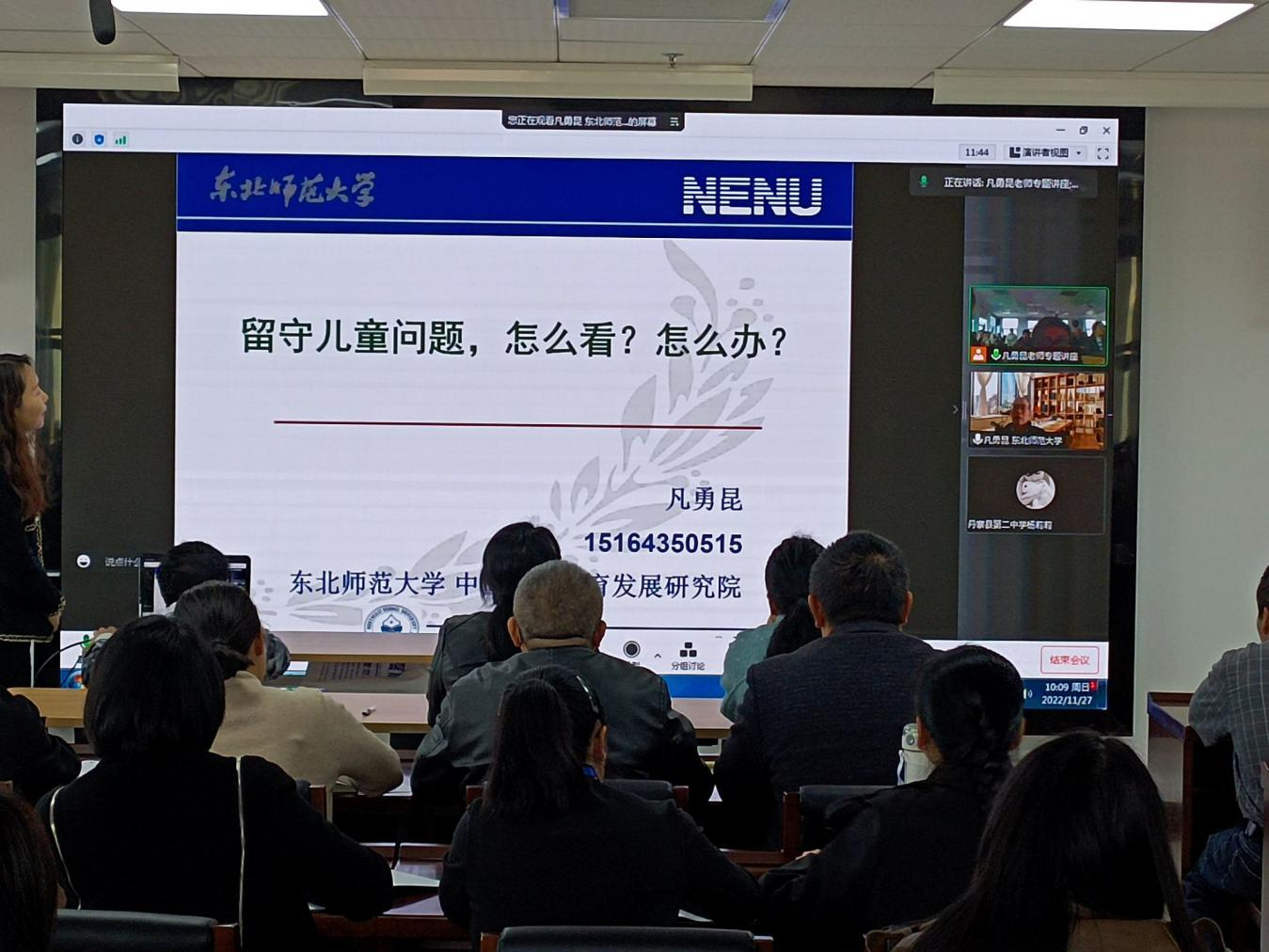 2022年11月27日上午,东北师范大学博士生导师,教育部人文社会科学重点研究基地东北师范大学中国农村教育发展研究院经理助理,中国教育学会农村教育分会副秘书长,教育部课程思政教学名师凡勇昆副教授利用远程网络在线上给学员们做了一场精彩、生动的讲座。围绕《留守儿童问题,这么看?怎么办?》这一主题,凡勇昆老师结合多年的教学和调研经验,给学员们讲解了当前农村留守儿童教育现状,存在哪些突出问题,留守儿童的需求有哪些等等。并针对这些具体问题,给学员们讲解了一些非常实用的解决策略。