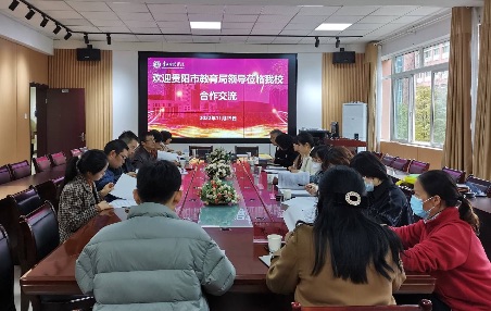 2022年11月29日,贵阳市教育局领导李艳一行到公司交流合作。bevictor伟德官网经理宋万琚、公司党委副书记傅小芳、副经理黎平辉、副经理袁川、吴晓英及特殊教育专业教师杨娟、雷经国、杨曼进行接待并出席本次研讨会,杨娟主持本次会议。