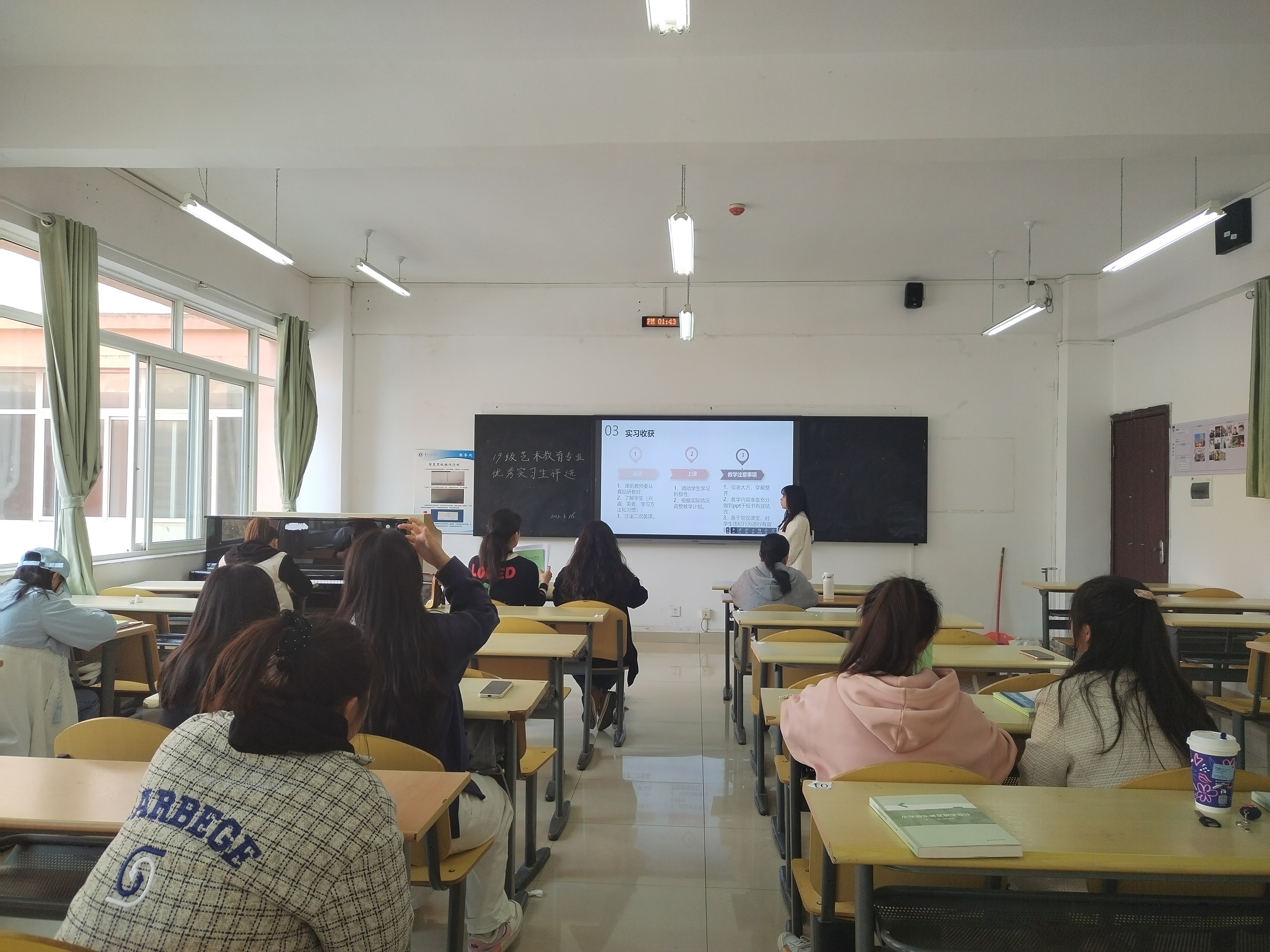 会议始,马慧慧老师介绍本次会议的目的,紧接着参与评选的各位同学有序进行实习汇报。汇报内容主要从实习单位介绍,实习期间担任的工作以及实习过程中的收获等三方面进行。实习初期主要是熟悉环境,了解员工学习情况以及通过跨班级跨学科等方式进行听课学习;实习中期,主要从事上课、研讨会议协助老师管理班级工作以及协助老师开展公司的各种文体活动;实习后期通过上公开课,反复打磨教学设计能力以及上课技巧。通过以上三个阶段,同学们都收获颇丰。同学们都表示在教学设计、语言组织以及课堂突发事件处理等方面能力均得到很大提高,上课时教态也更自然,课堂氛围也更加和谐了。