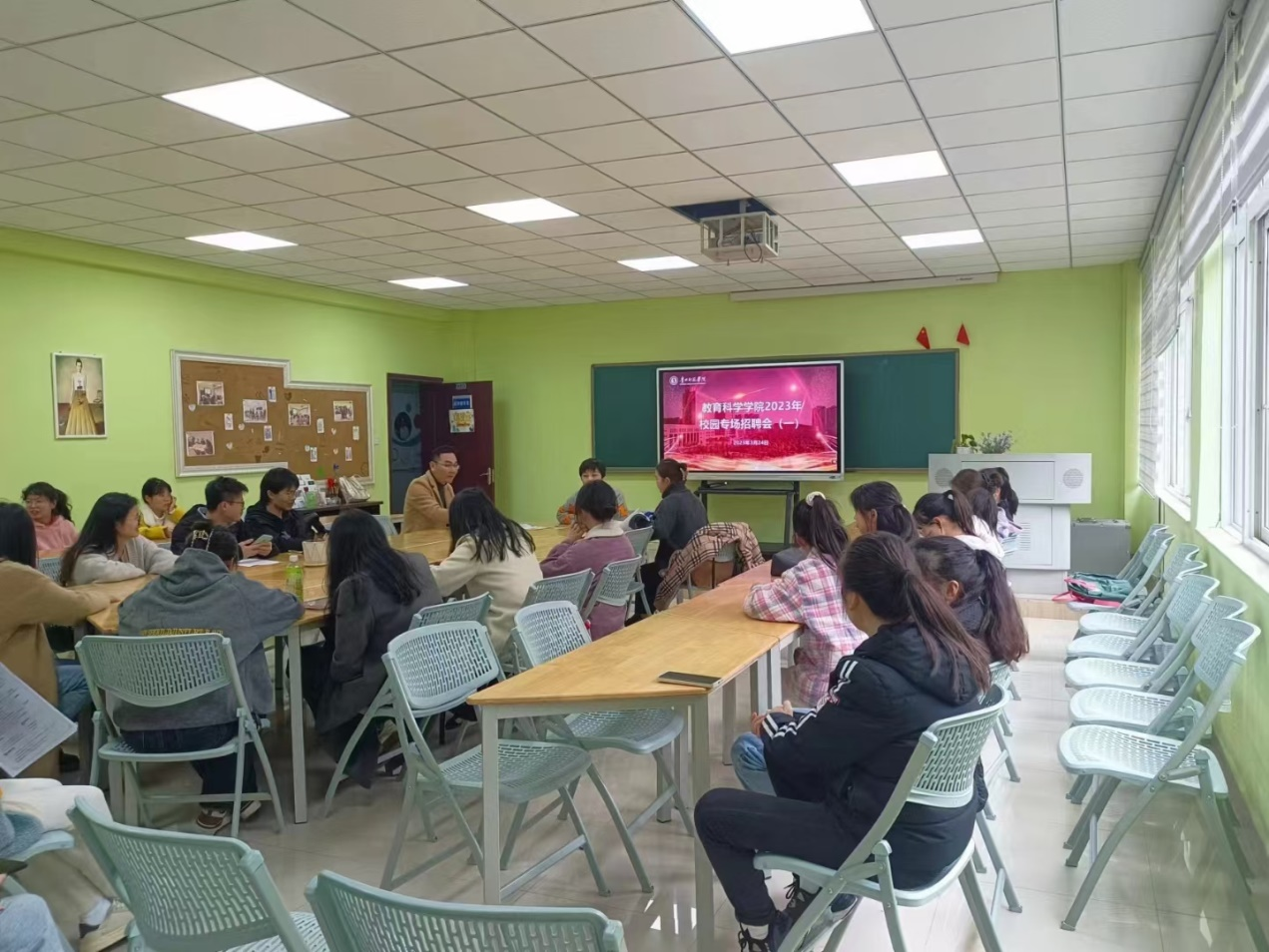 2023年3月24日,bevictor伟德官网2023届毕业生现场招聘会在逸夫楼心理咨询中心215教室召开。此次招聘会邀请到了贵阳市常青藤儿童之家的董事长郑飞一行3人到公司宣讲。此次招聘会由公司辅导员鲁蓓蓓主持。