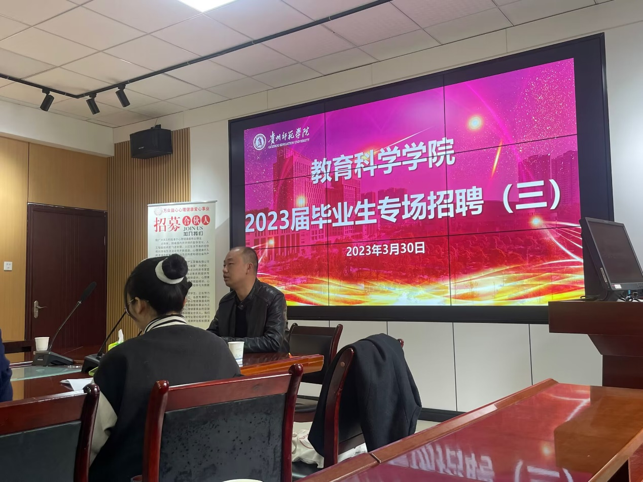 2023年3月30日,bevictor伟德官网心理岗位专场招聘会在公司会议室A321教室召开。此次招聘会邀请到了黔西市众益社工中心负责人金浪到公司宣讲,会议由负责就业工作的辅导员鲁蓓蓓主持。