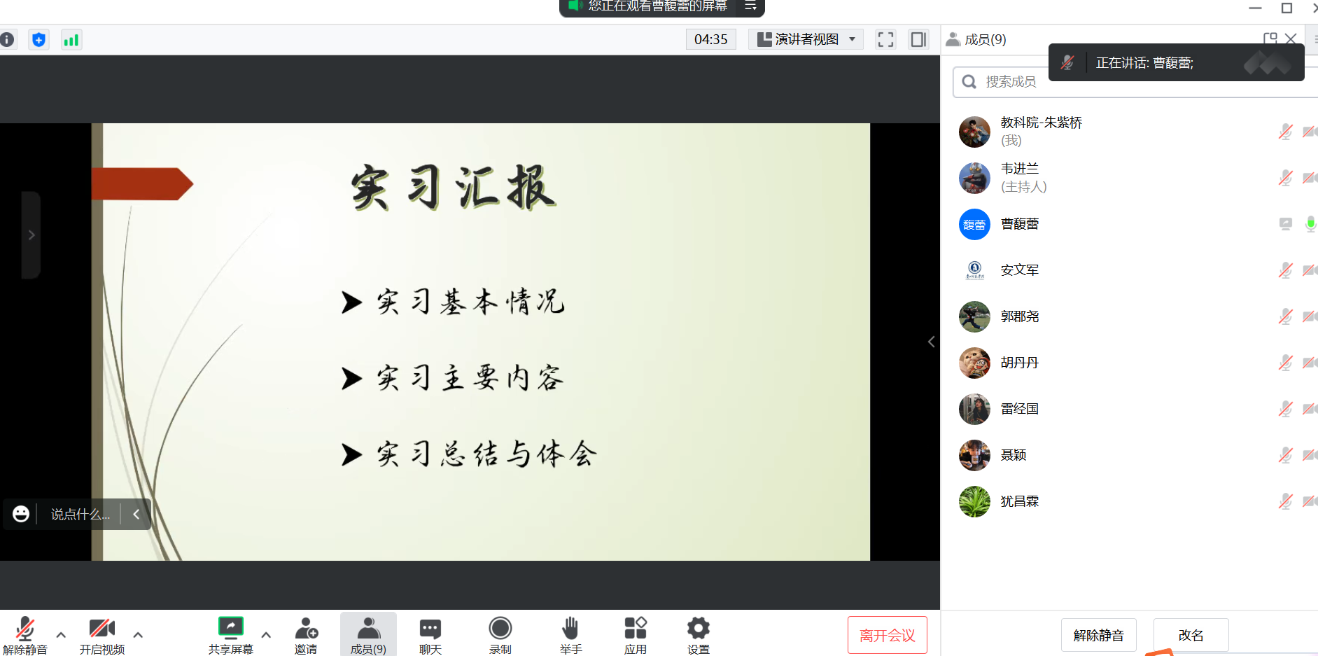 为进一步做好2023届优秀实习生评比工作,bevictor伟德官网特殊教育专业优秀实习生实习汇报于2022330日下午在腾讯会议上进行。会议由系实习领导小组组长朱紫桥主持,出席本次汇报会议的有雷经国、邓秀平、安文军等本专业老师。