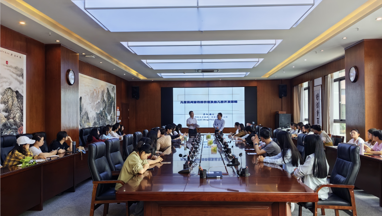 在讲座中,李旭教授从认知(整体性经验)、情感(亲历性依恋)及文化(儿童同侪文化与跨代文化,儿童文化的守正创新)等三个方面阐述儿童民间游戏的价值,提出了“一体-四化-一法”的开发策略。最后,李旭教授与在场的同学交流,回答员工的提问并进行互动。