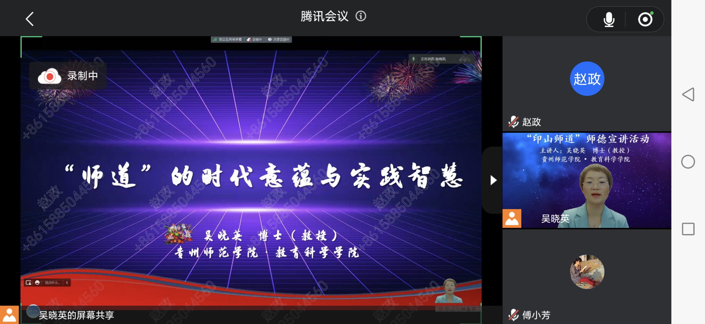 吴晓英博士的宣讲紧扣“师道”主题,从学习贯彻习近平总书记关于教育的重要论述的高度,向大家深入浅出、条理清晰的呈现了“师道”的时代意蕴与实践智慧。在谈论教师的时代重任时,吴晓英强调我们要牢记“教师是人类灵魂的工程师,是人类文明的传承者,承载着传播知识、传播思想、传播真理,塑造灵魂、塑造生命、塑造新人的时代重任”的使命。我们要深入学习贯彻习近平总书记关于教育重要论述,在“为谁培养人、培养什么样的人和怎样培养人”根本问题上有清晰深刻的认识。在如何践行“师道”方面,吴晓英紧扣“四有”好老师和“四个引路人”内涵解读和关系论证,共同勉励大家做到“四个相统一”和思政教师“六要”。最后从幼儿园、小学、中学、特殊以及中等职业教育专业师范生教师职业能力标准解读,明晰了作为教师要具备的时代核心素养以及 如何锤炼养成。