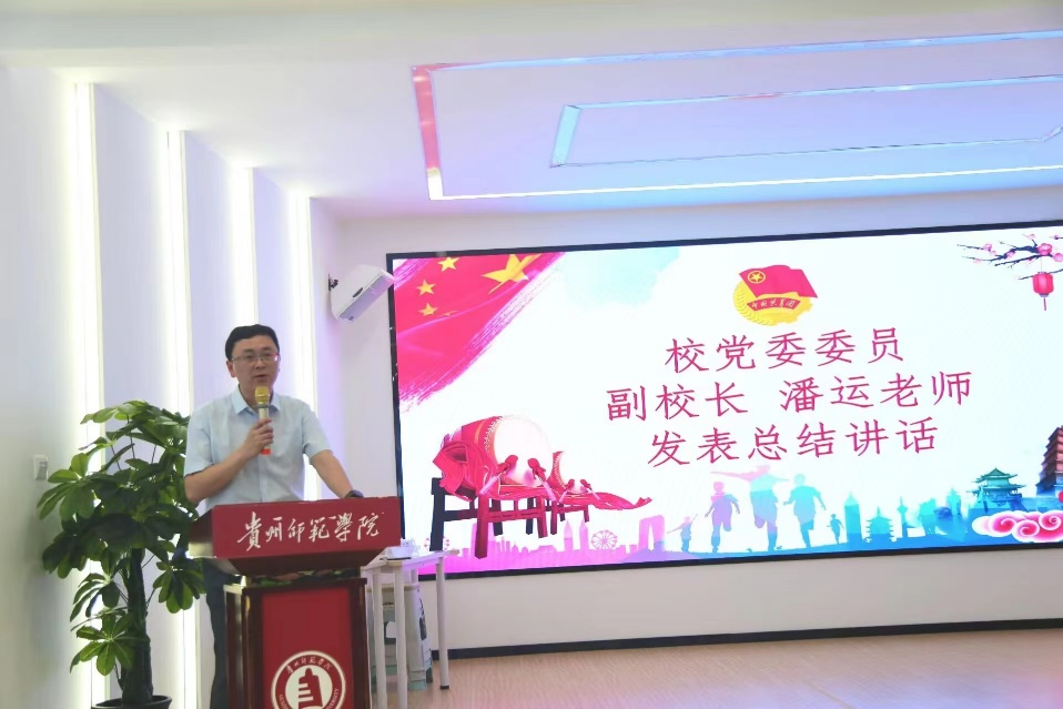 潘运高度评价了此次主题团日活动,并指出本次活动结合专业特色全面展现了艺术教育员工的专业素质。他结合自身的成长经历,寄语广大青年应缅怀先辈们崇高的爱国情怀和革命精神,勉励广大青年要在新时代发出青年好声音,肩负青年的使命与责任,为强国建设、民族复兴贡献青春力量。他教导同学们作为新时代的青年,要自强自信,感党恩、听党话、跟党走,珍惜当下的幸福生活;要树立正确的人生观、世界观和价值观,历练自身的意志品质;要强化实践锻炼,学好专业知识和技能,将专业知识技能运用于实践中;要结合自身的实际树立目标,脚踏实地的学习,为国家、为社会做贡献。最后,潘运祝同学们健康、勤奋、有个美好的未来发展。