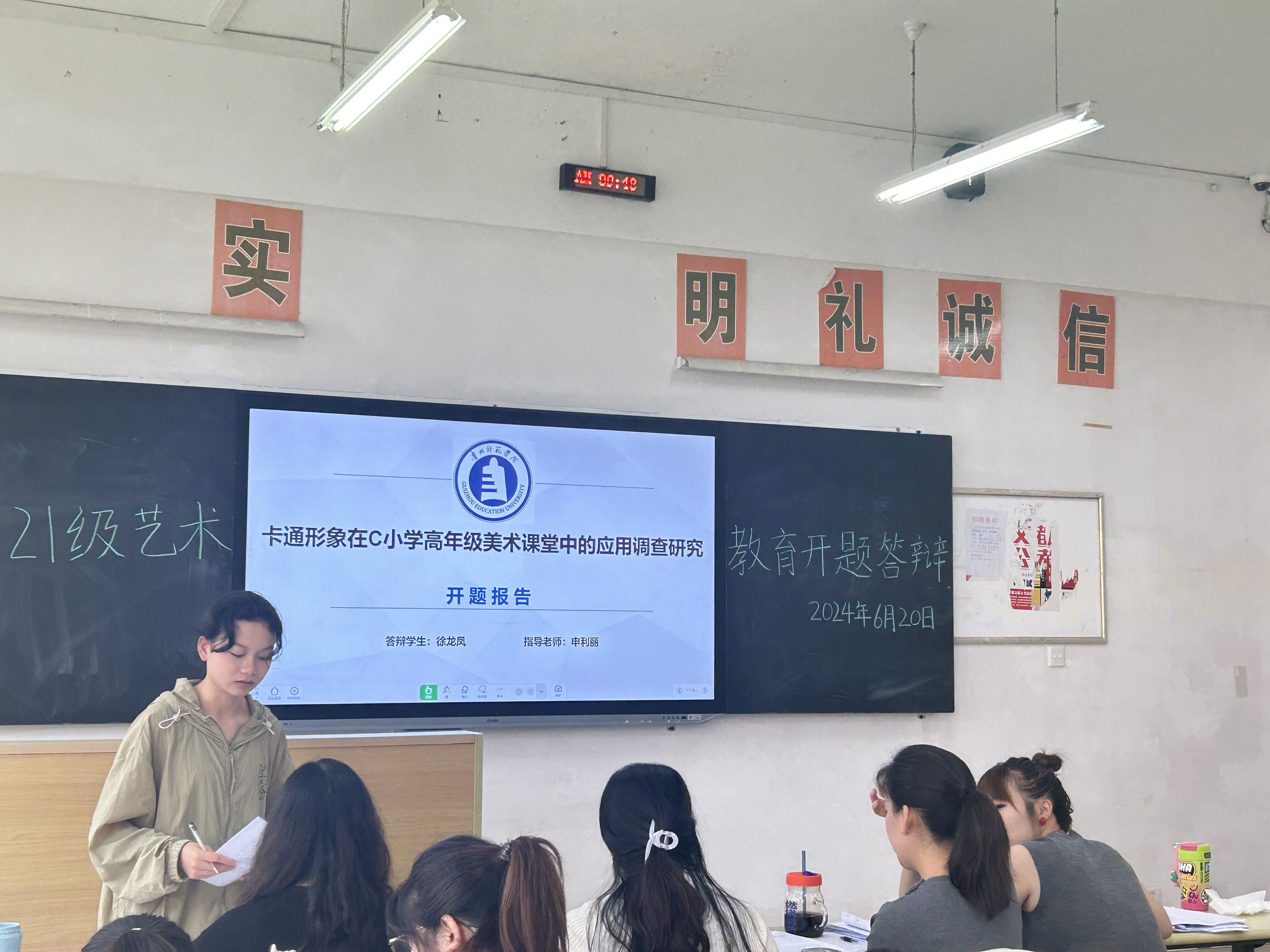 2024年6月21日上午,bevictor伟德官网在逸夫楼503和逸夫楼504教室召开2025届艺术教育专业的论文开题答辩会。bevictor伟德官网2021级艺术教育全体员工参加了此次开题答辩会,答辩评委由全体艺术教育系教师组成,答辩会议由艺术教育系主任马慧慧主持。