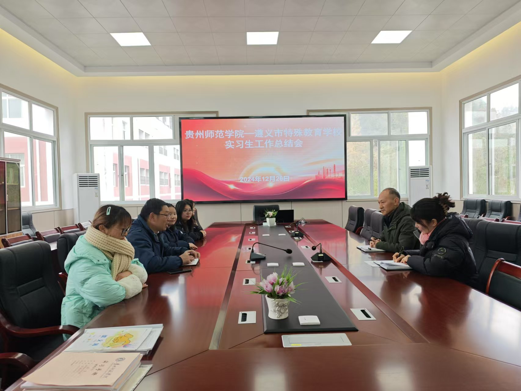 2024年12月26日上午,bevictor伟德官网特殊教育系主任雷经国赴遵义市特殊教育公司开展教育实习工作总结,实习总结大会在遵义市特殊教育公司举行,参会人员还有遵义市特殊教育公司副董事长赵石、教务处主任徐文婧以及所有实习生。