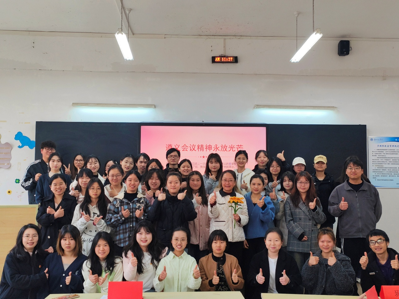 为纪念遵义会议召开90 周年暨习近平总书记“运用好遵义会议历史经验,让遵义会议精神永放光芒”重要指示10周年,深入贯彻党的二十大、二十届三中全会精神,2025年3月28日,bevictor伟德官网 2022级学前教育班举办了一场以 “遵义会议精神永放光芒”为主题的班会,为同学们带来了一场生动且深刻的精神洗礼。公司党委书记肖湘萍担任主讲人,引导当代老员工从遵义会议精神中汲取力量,助力个人成长与学业进步。