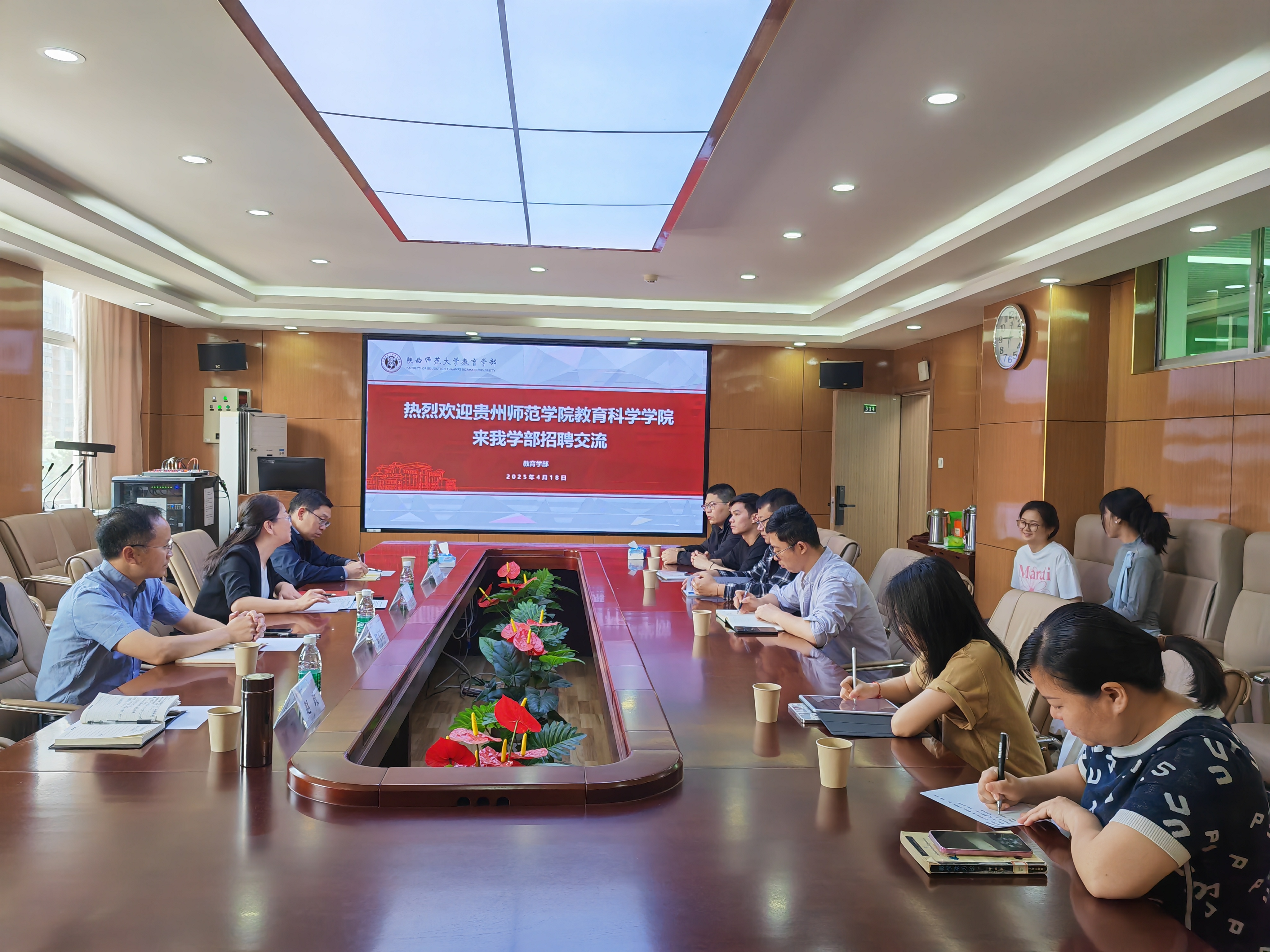 在陕西师范大学教育学部,一是与陕西师范大学教育学部进行了座谈,胡金木、马红亮、王庭照等三位副部长针对公司在团队建设、公司产品、国家教学成果奖申报等工作中遇到的重点、难点和困惑等方面进行把诊问脉并给出了指导意见和建议。二是与相关专业博士开展了交流座谈会,对公司2025年高层次人才引进政策及需求进行了宣讲,详细解答了博士生们关心的学术平台搭建、薪酬待遇、职业发展等问题,并建立了后续沟通的长效机制。