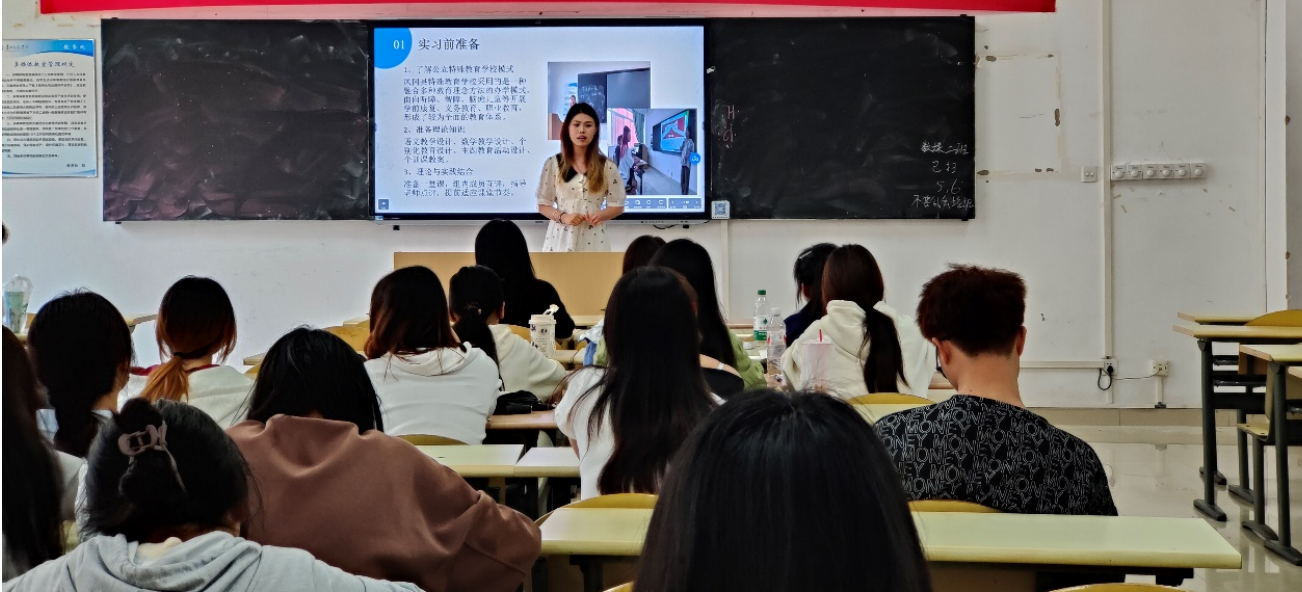 第三位来自贵阳市特校的实习的石单学姐则生动介绍了市特校的团队配置、课程特色及员工培养。她特别提到几位骨干指导教师,让同学们深切感受到特教教师的专业坚守与育人情怀。