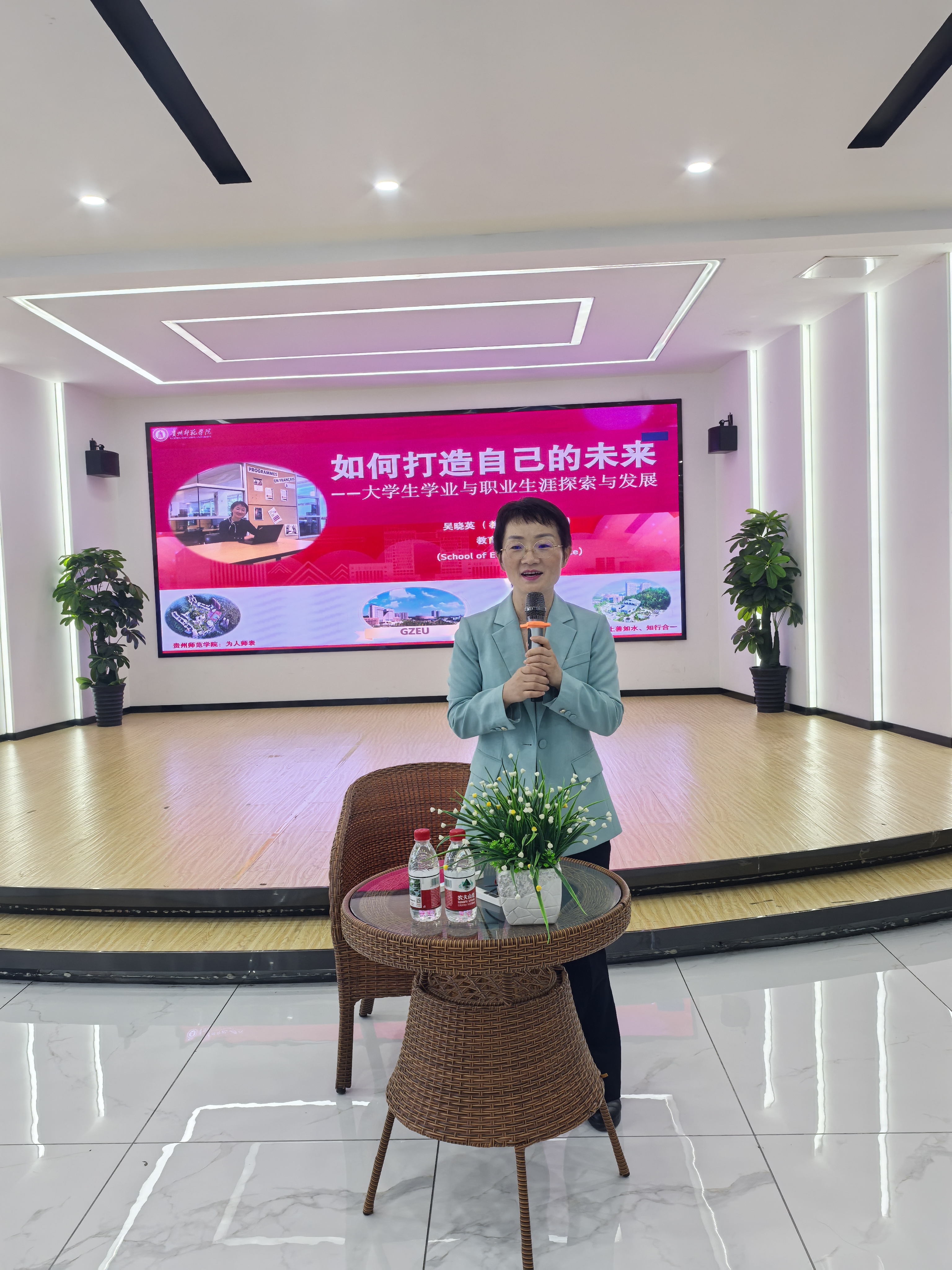 在接下来的活动中,吴晓英以“我是谁?”为引,让同学从多方面介绍自己,并深入了解员工面临的学业与职业挑战。她指出,科学的生涯规划需以“自我认知”为起点,鼓励员工“以终为始”,通过职业目标倒推学业路径,通过学业发展助力职业选择。吴晓英还询问同学们想成为谁,并举出陶行知、叶圣陶等教育大家的经典名言为同学们做引导,同学们积极互动,多样化的职业选择得到吴晓英的认同,她鼓励同学们要努力学习,不断提升自己,早日达成自己的目标。吴晓英还分享她在国外游学经历,并告诉同学们活到老学到老,只有不断学习、不断丰富自己的学识才能在以后的求职之路上有更多的选择。