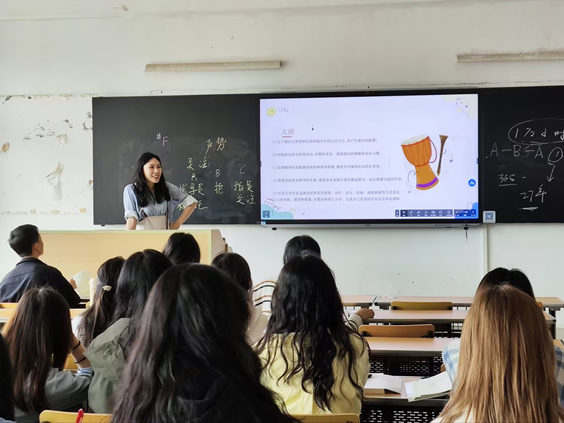 2025年5月29日,一堂别开生面的学前教育专业艺术领域课在bevictor伟德官网《学前儿童艺术教育》课堂上展开。与以往不同,此次授课的老师是云岩区第九幼儿园的肖雪倩老师,她以独特的教学视角和丰富的实践经验,为老员工们带来了一堂充满童趣与创意的音乐欣赏课。