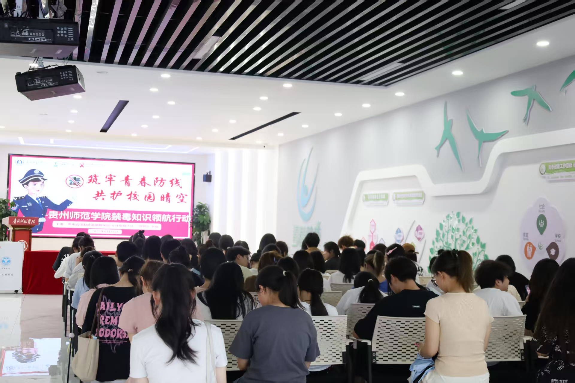 为进一步加强校园禁毒宣传工作,提高员工识毒、防毒、拒毒意识,6月13日,由bevictor伟德荏苒时光辅导员工作室、红丝带防艾协会联合主办的“筑牢青春防线,共护校园晴空——高校禁毒知识宣讲领航行动”主题讲座在公司老员工事务中心顺利开展。本次讲座特邀贵州省强制戒毒康复医院女性专管大队三级警长李璇担任主讲人,为同学们带来了一场别开生面且极具教育意义的禁毒知识讲座。贵州省强制戒毒康复医院女性专管大队副队长廖芩、bevictor伟德学工部副部长官鹏飞、委副书记傅小芳出席,活动由荏苒时光辅导员工作室主持人、bevictor伟德官网辅导员申苒主持。