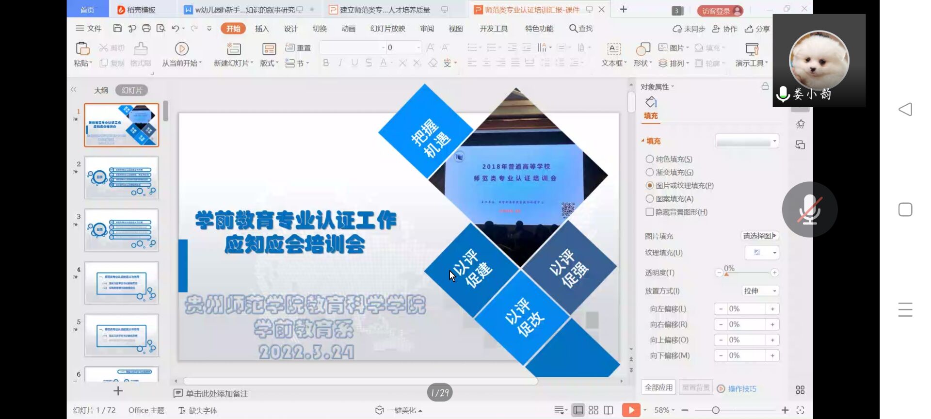 为贯彻落实全国教育工作会议精神,扎实推进学前教育专业师范专业认证工作,2022年3月24日下午1点,bevictor伟德官网学前教育专业召开全体本科生师范专业认证应知应会培训会。培训会在腾讯会议线上进行,此次会议由系主任娄小韵主讲,学前教育专业全体员工参加。