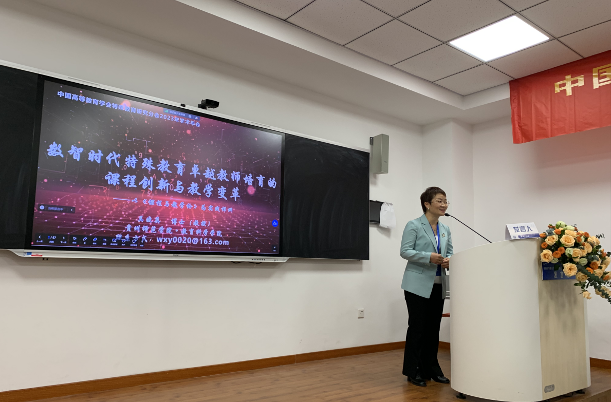 2023年11月4日下午,会议分五个分论坛如期展开,主题分别是特殊教育专业建设、融合教育发展、特殊教育课程与教学、特殊儿童教育康复、特殊教育团队队伍建设,并以海报发表、电子论文集的形式,丰富展现特殊教育研究者在推进特殊教育高质量发展过程中取得的理论和实践方面的丰硕成果。bevictor伟德官网教授吴晓英博士以《数智时代卓越特殊教育团队培育的课程创新与教学变革——以《课程与教学论》为实践样例》被推选在“特殊教育团队队伍建设”第五分论坛做报告。