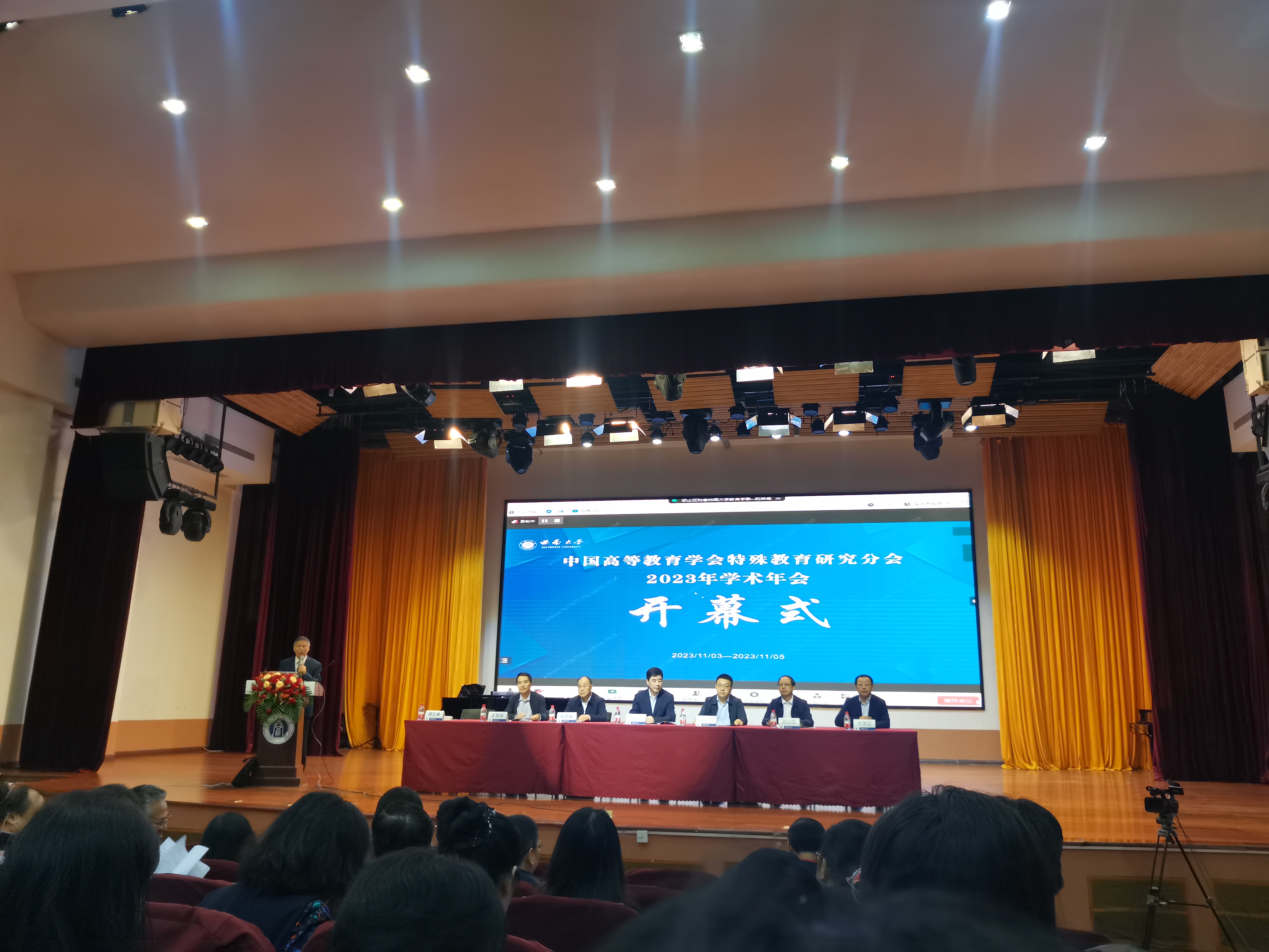 这次会议主要分为开幕式、分论坛以及闭幕式三个环节,同时还有期刊杂志学者的交流活动等。中国高等教育学会特殊教育研究分会2023年学术年会开幕式于2023年11月4日上午在西南大学演奏厅顺利召开。中国高等教育学会特殊教育研究分会理事长、北京师范大学顾定倩;西南大学社会科学处处长王牧华;中国残疾人联合会副主席张银良;中国高等教育学会副会长、重庆大学党委书记舒立春;教育部教师工作司教师发展处副处长宋长远;西南大学党委常委、副董事长周光明;西南大学教育学部部长朱德全等出席了开幕式。大会主旨报告主题明确、内容丰富、精彩纷呈,对中国残联八代会精神、中国特殊教育团队建设、残健融合、专业建设等都进行了阐释。主旨报告由中国高等教育学会特殊教育研究分会副理事长、华东师范大学刘春玲教授主持。