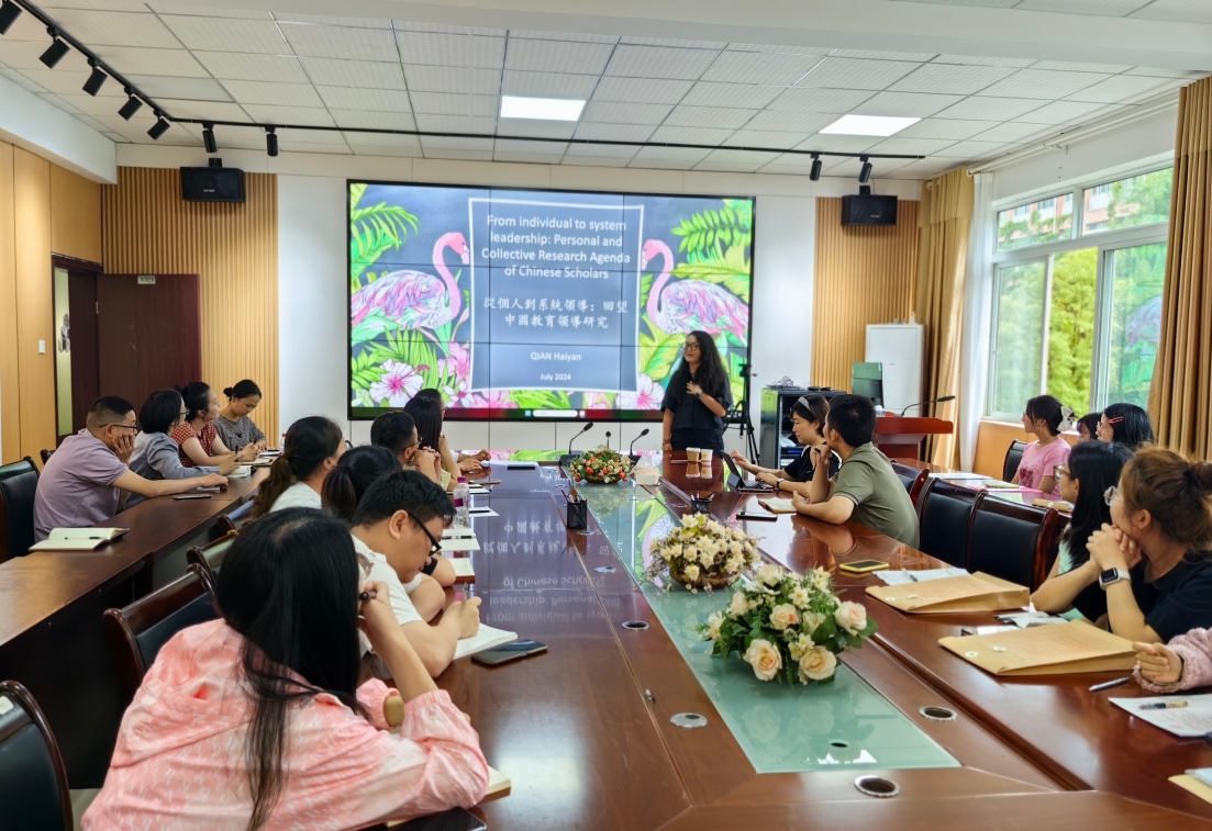 2024年7月1日,恰逢香港回归24周年,香港教育大学钱海燕教授到bevictor伟德官网开展《从个人到系统领导:回望中国教育领导研究》的学术报告。学术报告会由bevictor伟德官网经理宋万琚主持,bevictor伟德官网教师、公司与师大联合培养的教育管理研究生、一线董事长及部分本科生参加了本次学术报告。