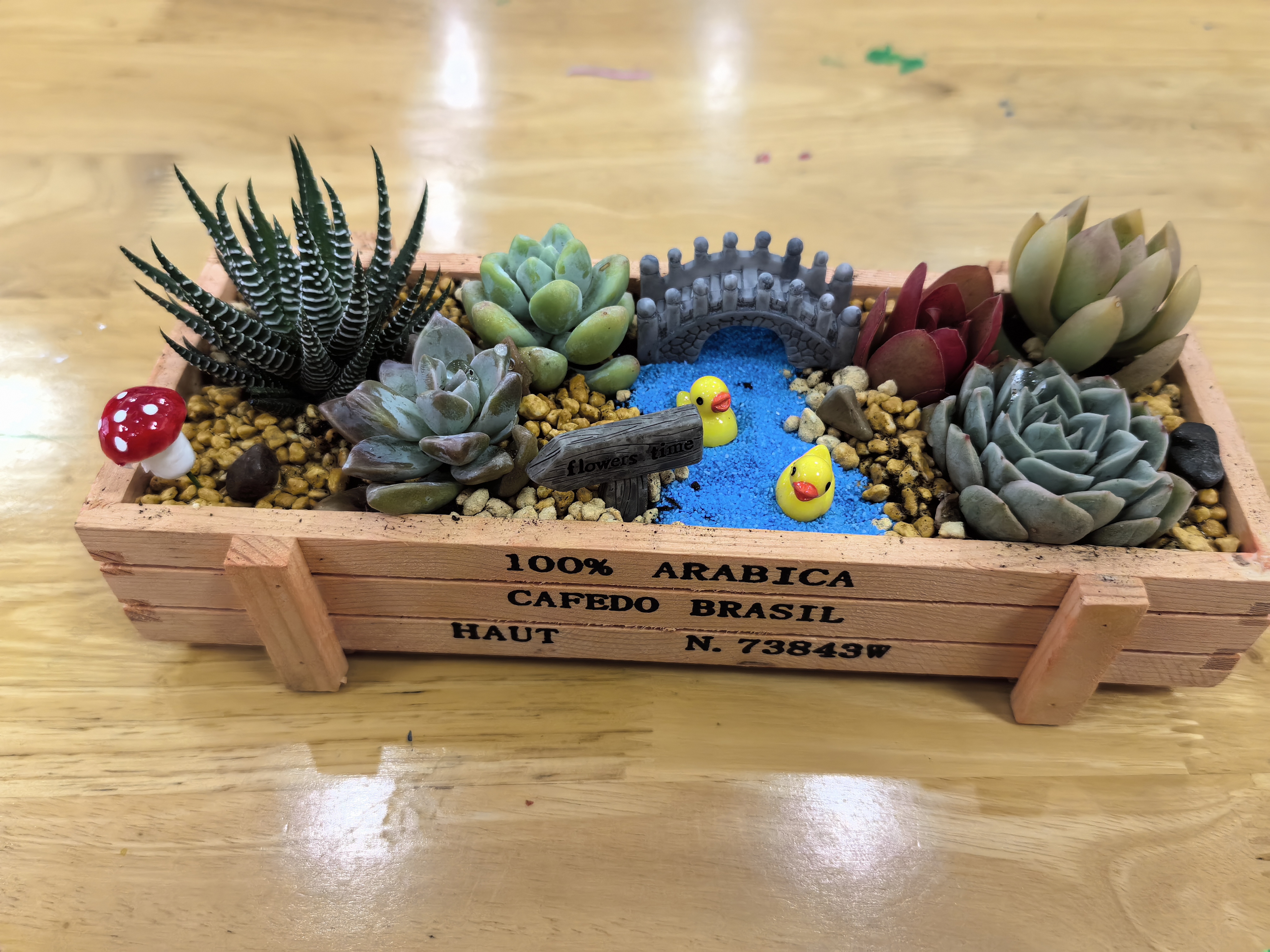 活动现场,工会精心准备了多种多样的多肉植物、花盆、土壤及装饰材料,并邀请了学前教育专业同学指导。同学首先为大家讲解了多肉植物的种类、生长习性以及日常养护技巧,随后女职工们纷纷动手,发挥创意,将不同种类的多肉植物搭配组合,制作出独具特色的多肉盆栽。