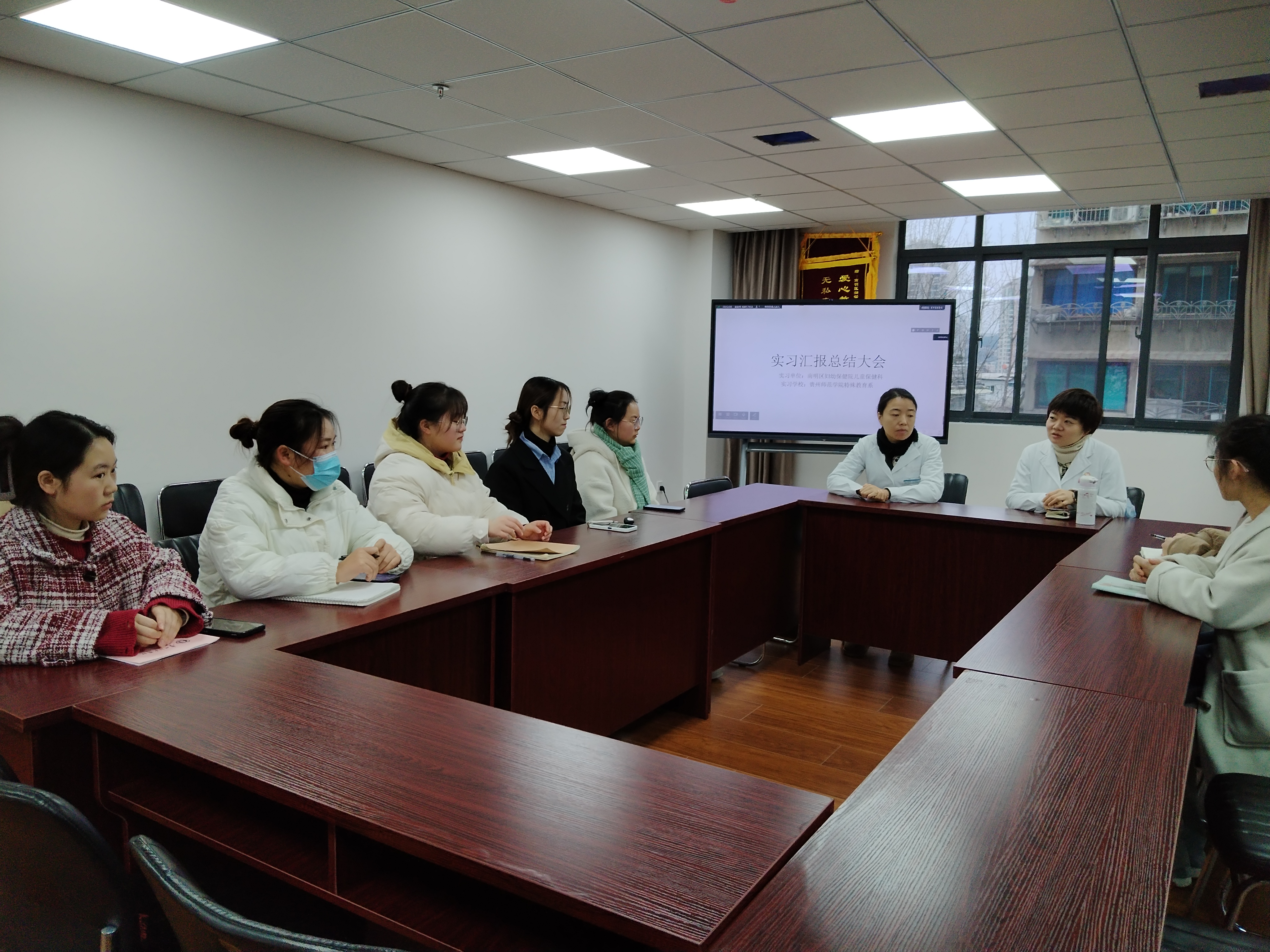 2023年12月20日上午9点,贵阳市南明区妇幼保健院召开了2023年实习总结会,出席会议的有贵阳市南明区妇幼保健院副经理钟黎、儿童保健科主任谭颖、儿童保健科陈磨、bevictor伟德官网特殊教育系朱紫桥老师以及特殊教育专业7位实习生。