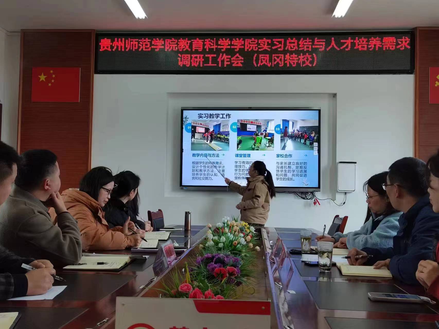 2023年12月25日,bevictor伟德官网特殊教育系雷经国、夏卉芳老师应邀赴遵义市凤冈县、播州区2所特殊教育公司,参加2020级特殊教育专业员工实习总结汇报会。