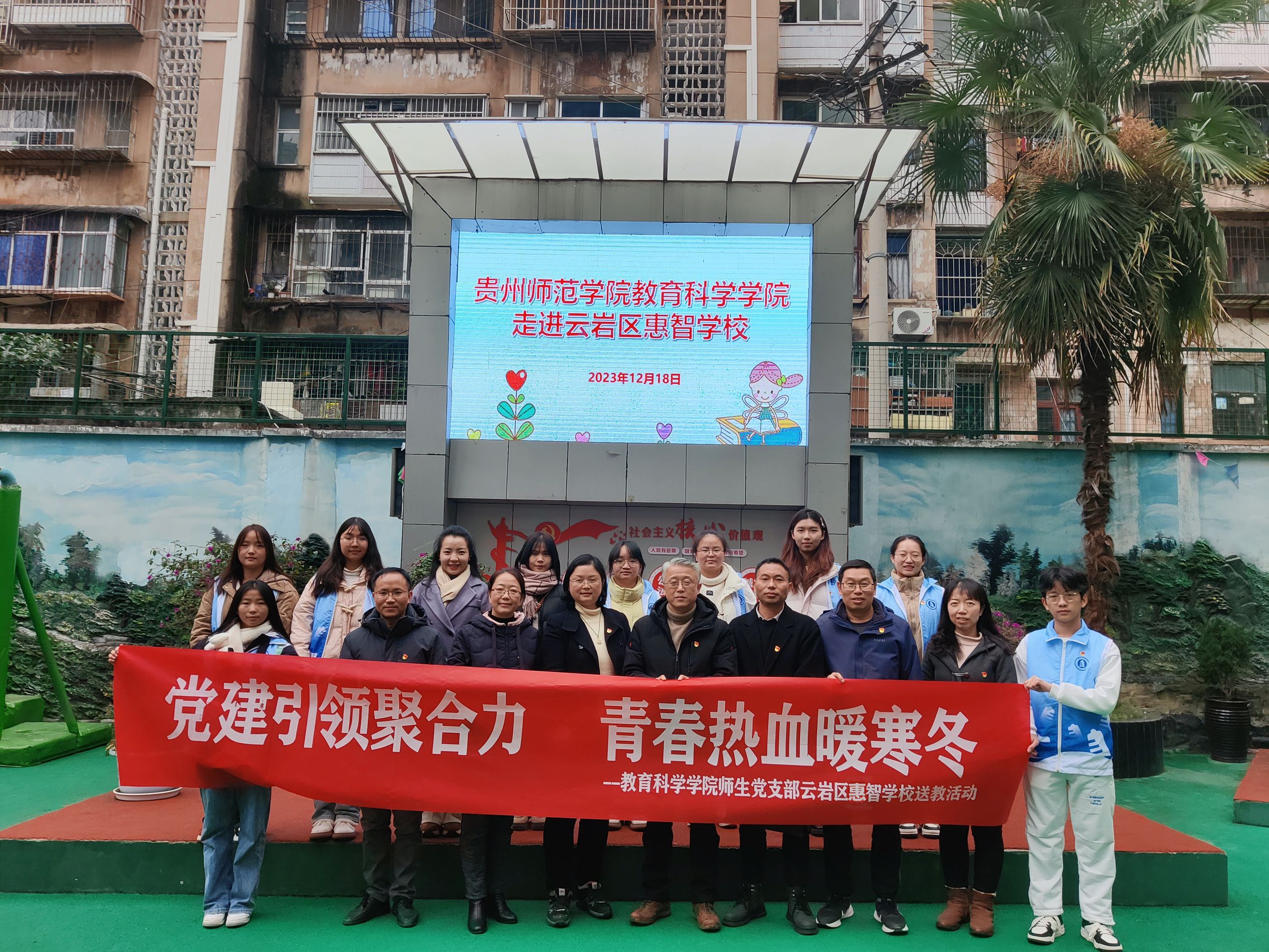 为深入贯彻落实习近平新时代中国特色社会主义思想和党的二十大精神,围绕“立德树人”根本任务,强化协同育人机制。2023年12月18日,在委书记肖湘萍、党委纪检委员、副经理黎平辉的带领下,教师党支部书记张鸿翼、员工党支部书记张源、特殊教育系主任雷经国以及部分师生党员与云岩区惠智公司党支部党员联合开展主题党日活动。