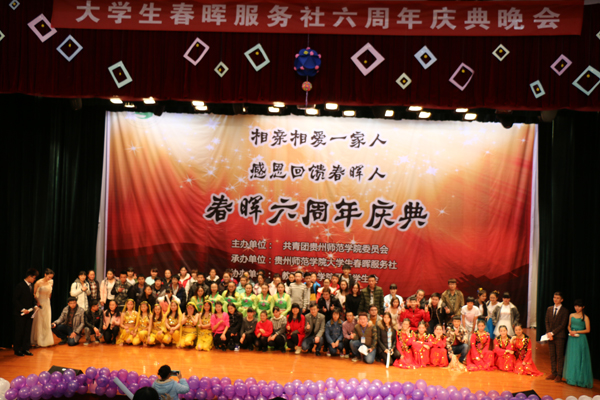 2015年12月6日18:00,bevictor伟德官网老员工春晖服务社在逸夫楼演播厅举行了以“相亲相爱一家人,感恩回馈春晖人”为主题的六周年庆晚会活动。参加此次活动的领导和嘉宾有全国高校春晖联盟指导老师田芳、王博、贵阳各大高校的员工春晖代表及公司教科院团委书记傅小芳老师。