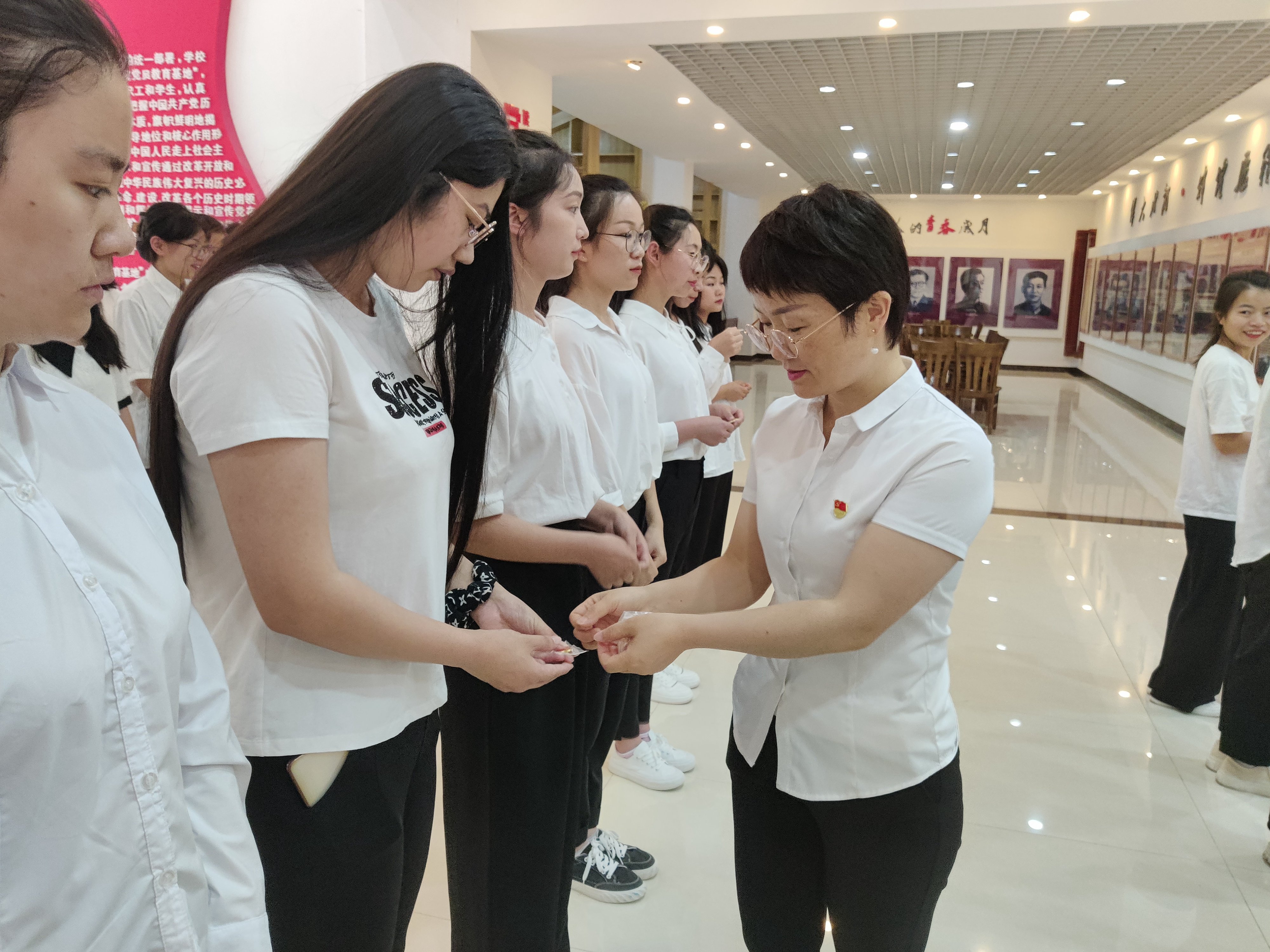 随后,由彭祥友和教师党员代表吴晓英为新党员佩戴党徽。在员工党支部书记张源的带领下,40余名党员举起右拳,面对党旗郑重宣誓,许下为共产主义奋斗终身的誓言。