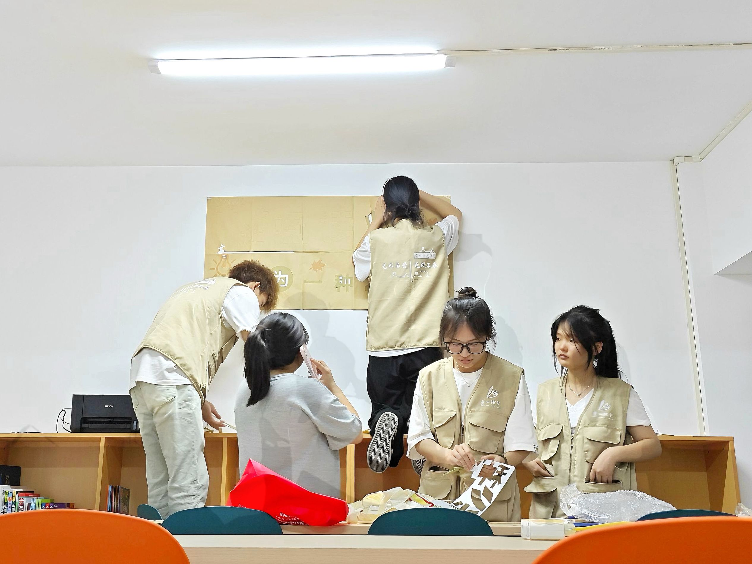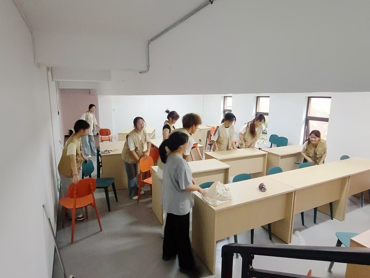 此次团队选择该站点作为实践基地,聚焦随迁子女群体,将专业所学融入社会实践,充分体现了老员工服务社会、关爱儿童的责任担当。活动首日,实践团队迅速进入状态。指导教师张源首先对全体队员进行了工作部署,强调了活动意义、安全纪律以及服务过程中的注意事项,要求大家以高度的责任感和饱满的热情投入实践。随后,队员们齐心协力,对益童乐园的活动场地进行了细致的打扫与布置,营造出更加整洁、温馨的环境,为后续活动的开展做好准备。接着,团队成员与益童乐园贵阳云岩站点的负责人李小露进行了深入交流与沟通。双方就本次“三下乡”社会实践活动的具体内容、课程安排以及预期目标等细节展开了务实而高效的讨论。最后经过充分协商,顺利确定了后续活动的详细流程和实施方案,为未来一段时间的精准服务奠定了坚实基础。