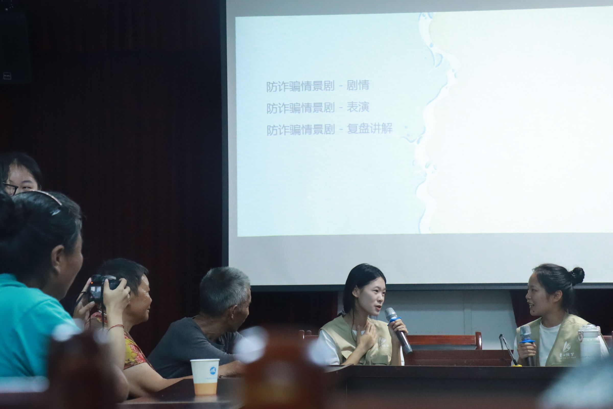 志愿者杨芬兰结合“免费领鸡蛋诱购保健品”“网恋借钱”等案例,拆解老年人易遇的电信、街头、情感骗局,总结“信息不外露、花钱先商量”的防骗原则;针对农村池塘、水渠等隐患,强调“远离无人水域、不盲目下水”的防溺要点。其次,志愿者们生动演绎了两场情景剧——《免费鸡蛋的陷阱》还原诈骗套路,引导大家归纳“查头衔、问子女”的防范口诀;《黄昏恋里的“温柔陷阱”》演绎网恋骗局,互动中明确“见面前不谈钱”的准则。尾声的知识竞赛环节,老人们与残疾朋友踊跃参与,进一步巩固所学。